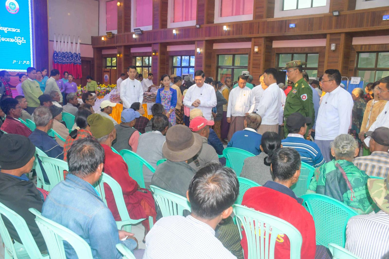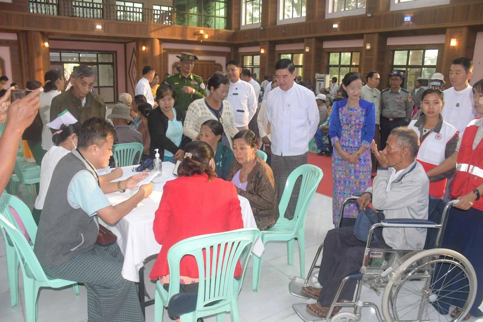 အငြိမ်းစားဝန်ထမ်းများအား ပင်စင်လစာထုတ်ပေးခြင်း၊ ကျန်းမာရေးစောင့်ရှောက်မှုပေးခြင်းနှင့် ချီးမြှင့်ပေးအပ်ခြင်းဆောင်ရွက်ရာတွင် ပြည်နယ်ကျန်းမာရေးဦးစီးဌာနမှူး ဒေါက်တာကြည်လွင်နှင့် ခုတင်(၅၀၀)ဆံ့ အထွေထွေရောဂါကုဆေးရုံကြီးမှ ဆေးရုံအုပ်ကြီးတို့က အနီးကပ်ကြီးကြပ်ကာ ခုတင်(၅၀၀)ဆံ့ အထွေထွေရောဂါကုဆေးရုံကြီးမှ သမားတော်ကြီးများ၊ အထူးကုဆရာဝန်ကြီးများနှင့် ကျန်းမာရေးဝန်ထမ်းများက သွေးပေါင်ချိန်တိုင်းတာပေးခြင်း၊ သွေးအတွင်းအောက်ဆီဂျင်ပါဝင်မှု တိုင်းတာပေးခြင်း၊ ဆီးချို၊ သွေးချိုစစ်ဆေးပေးခြင်း၊ နှလုံးရောဂါစစ်ဆေးခြင်းနှင့် အီးစီဂျီရိုက်ပေးခြင်းများကို ဆောင်ရွက်ပေးကြပြီး လိုအပ်သောဆေးဝါးများကိုလည်း အခမဲ့ထုတ်ပေးကြသည်။ အလားတူ တိုင်းရင်းဆေးပညာဦးစီးဌာနမှ ပြည်နယ်ဦးစီးမှူးနှင့် ဝန်ထမ်းများကလည်း အငြိမ်းအစားဝန်ထမ်းများအား တိုင်းရင်းဆေးဝါးများနှင့် ကုသပေးခြင်းများကို ဆောင်ရွက်ပေးကြပြီး တိုင်းရင်းဆေးများကို အခမဲ့ချီးမြှင့်ပေးအပ်ခဲ့ကြသည်။