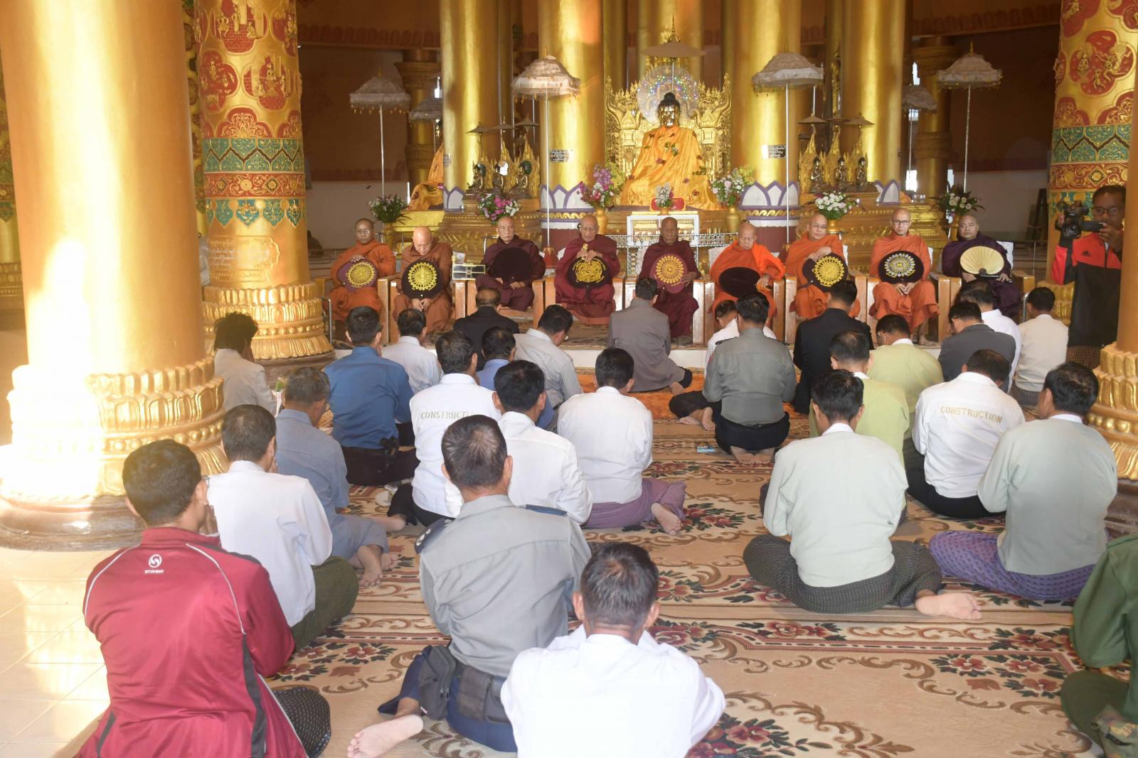 ဆက်လက်၍ သံဃာတော်အရှင်သူမြတ်များ၊ ပြည်နယ်ဝန်ကြီးချုပ်နှင့် အစိုးရအဖွဲ့ဝင်များသည် မာရဝိဇယဆင်းတုတော်နှင့် အဘယရာဇမုနိဆင်းတုတော်တို့အား သွားရောက်ဖူးမြော်ကြည်ညိုကြပြီး ဆင်းတုတော်နှစ်ဆူကိန်းဝပ် အပူဇော်ခံတော်မူမည့် စံကျောင်းတော်နှစ်ဆောင်ဆောက်လုပ်နေမှုနှင့် ဆောက်လုပ်ပြီးစီးနေမှုအခြေအနေများ၊ ဆက်လက်ဆောင်ရွက်ရမည့်အခြေအနေများကို လှည့်လည်ကြည့်ရှုကြရာ တာဝန်ရှိသူများက လိုက်လံရှင်းလင်းပြသကြသည်။