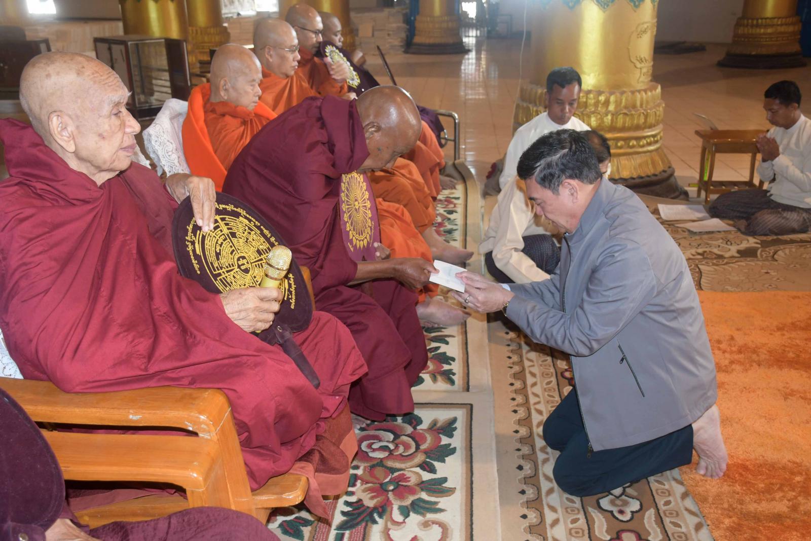 တင်ပြချက်များအပေါ် ပြည်နယ်ဝန်ကြီးချုပ်က ကျောက်ပြားခင်းခြင်းလုပ်ငန်းများကို စနစ်တကျသပ်ရပ်စွာဖြင့် ရေရှည်တည်တံ့ကောင်းမွန်အောင် ဆောင်ရွက်ကြရန်၊ အလား တူစံကျောင်းတော်များ ဆောက်လုပ်ရာတွင်လည်း မြန်မာမှုလက်ရာများဖြင့် ကြည်ညိုသဒ္ဓါပွားများနိုင်အောင် ဆောင်ရွက်ကြရန်နှင့် မိမိတို့တတ်ကျွမ်းသည့် ပညာဖြင့်ကုသိုလ်ပြုခွင့်ရရှိသည့်အတွက် စေတနာအပြည့်ဖြင့် ကုသိုလ်ယူဆောင်ရွက်ကြရန် မှာကြားသည်။