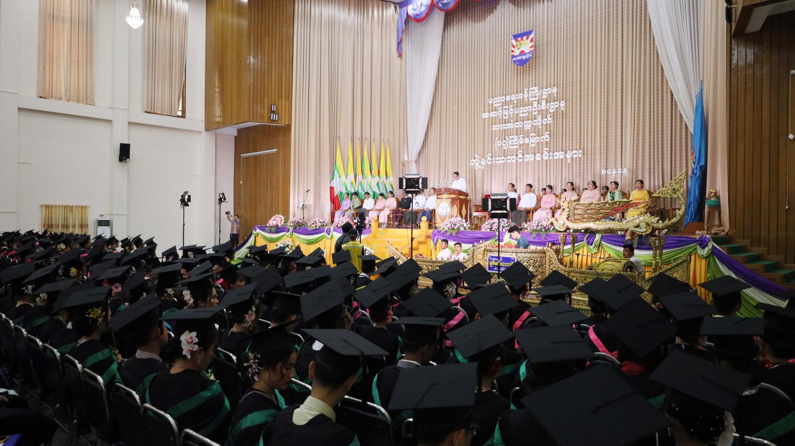 ဆက်လက်၍ ပညာရေးဝန်ကြီးဌာန၊ အဆင့်မြင့်ပညာဦးစီးဌာန၊ ဘားအံတက္ကသိုလ်၏ (၁၇)ကြိမ်မြောက် ဘွဲ့နှင်းသဘင်အခမ်းအနားကို ယမန်နေ့နံနက်(၉)နာရီက ဘားအံတက္ကသိုလ်ဘွဲ့နှင်းသဘင်ခန်းမ၌ ကျင်းပရာ ကရင်ပြည်နယ် ဝန်ကြီးချုပ်ဦးစောမြင့်ဦးနှင့်အစိုးရအဖွဲ့ဝင်များ တက်ရောက်အားပေးချီးမြှင့်ခဲ့ကြသည်။