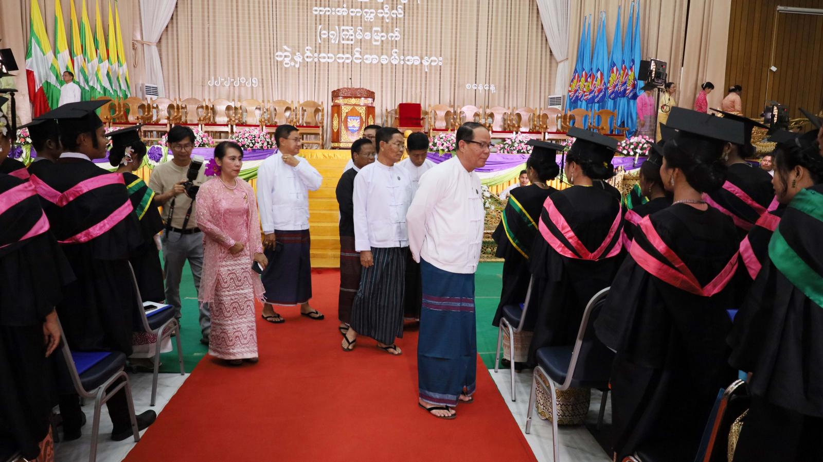 ထို့နောက် ပြည်နယ်ဝန်ကြီးချုပ်နှင့်ပြည်နယ်အစိုးရအဖွဲ့ဝင်များသည် (၁၇)ကြိမ်မြောက်ဘွဲ့နှင်းသဘင်အခမ်းအနားသို့ တက်ရောက်လာသော ဘွဲ့ရမောင်မယ်များနှင့် ၎င်းတို့၏မိဘဆွေမျိုးများအား ရင်းနှီးနွေးထွေးစွာတွေ့ဆုံနှုတ်ဆက်၍ အားပေးစကားများ ပြောကြားခဲ့ကြသည်။