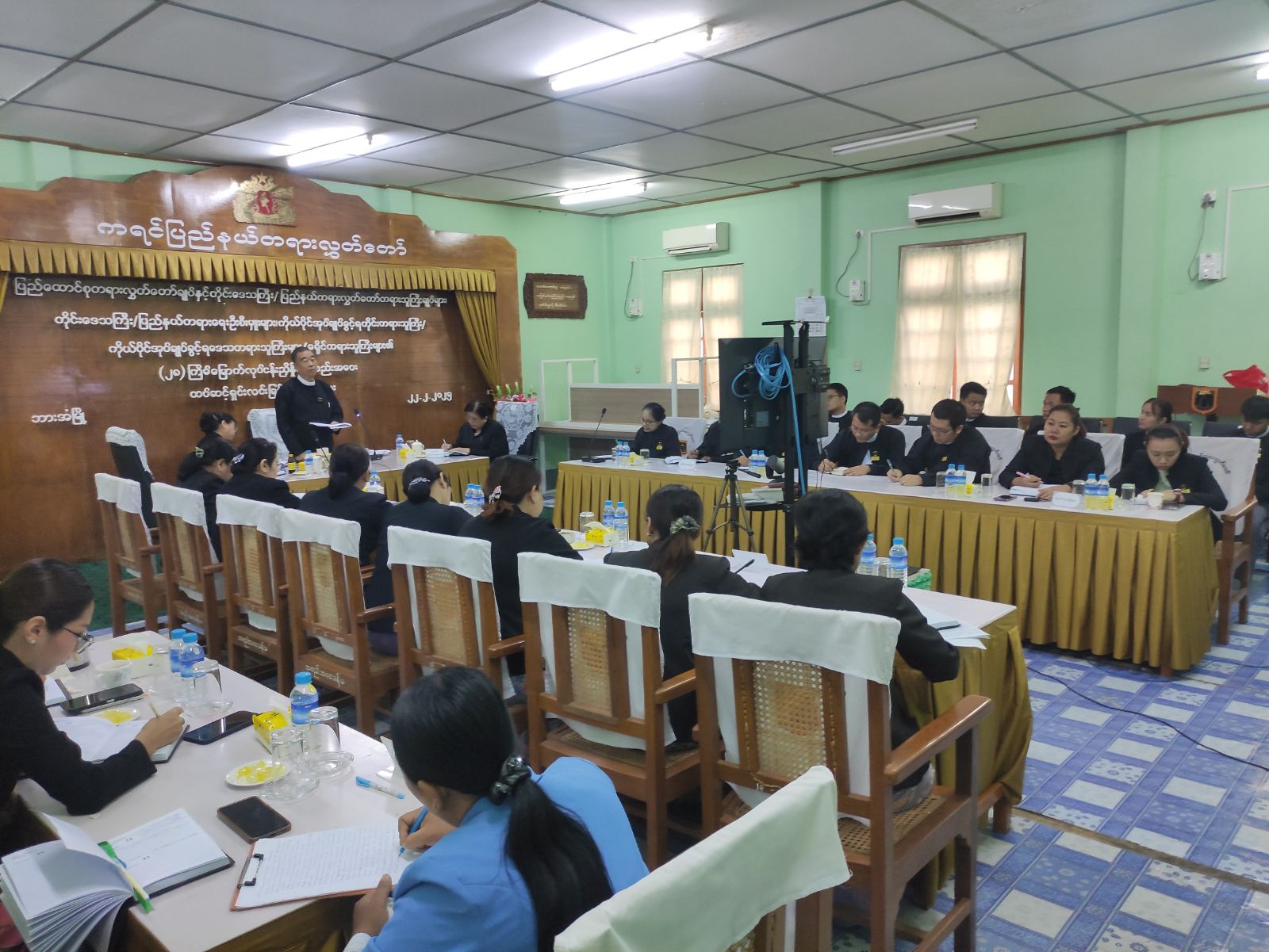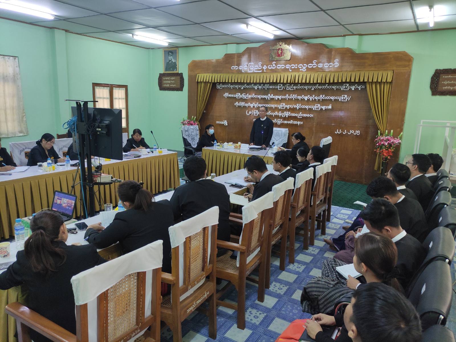 နေပြည်တော်ရှိ ပြည်ထောင်စုတရားလွှတ်တော်ချုပ်တွင် ၂၀၂၅ ခုနှစ်၊ ဖေဖော်ဝါရီလ ၁၃ ရက်နေ့မှ ၁၄ ရက်နေ့ထိ ဗီဒီယိုကွန်ဖရင့်စနစ်ဖြင့် ကျင်းပခဲ့သော ပြည်ထောင်စုတရားလွှတ်တော်ချုပ်နှင့် တိုင်းဒေသကြီး/ပြည်နယ် တရားလွှတ်တော်တရားသူကြီးချုပ်များ၊ တိုင်းဒေသကြီး/ပြည်နယ် တရားရေးဦးစီးမှူးများ၊ ကိုယ်ပိုင်အုပ်ချုပ်ခွင့်ရ တိုင်းတရားသူကြီး၊ ကိုယ်ပိုင်အုပ်ချုပ်ခွင့်ရဒေသ တရားသူကြီးများ၊ ခရိုင်တရားသူကြီးများ၏ (၂၈) ကြိမ်မြောက် လုပ်ငန်းညှိနှိုင်းအစည်းအဝေးတွင် လမ်းညွှန်မှာကြားချက်များအပေါ် ထပ်ဆင့်ရှင်းလင်းသည့်အခမ်းအနားကို ယမန်နေ့နံနက် ၇ နာရီခွဲက ကရင်ပြည်နယ်တရားလွှတ်တော်အစည်းအဝေးခန်းမ၌ ဗီဒီယိုကွန်ဖရင့်စနစ်ဖြင့် ကျင်းပခဲ့သည်။