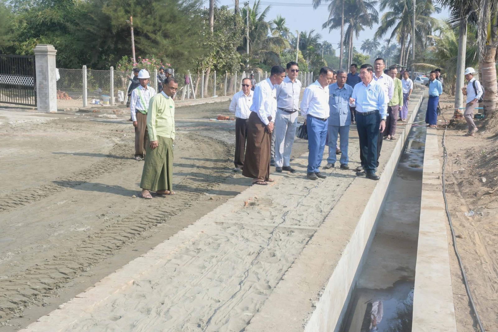 ထို့နောက် ပြည်နယ်ဝန်ကြီးချုပ်နှင့်အဖွဲ့သည် စစ်တွေမြို့၊ ပြည်တော်သာရပ်ကွက်၊ ဗုဒ္ဓေါမော်ဘုန်းတော်ကြီးကျောင်းမှ မြင်းစီးပြိုင်လမ်းအထိ ကွန်ကရစ်ခင်း၊ မြေထိန်းနံရံ၊ ပလက်ဖောင်း၊ ရေမြောင်း၊ ရေထွက်ပေါက်ပြုလုပ်ခြင်း လုပ်ငန်းဆောင်ရွက်မည့်နေရာအား သွားရောက်ကြည့်ရှုစစ်ဆေးကြရာ ပြည်နယ်လမ်းပန်းဆက်သွယ်ရေးဝန်ကြီးနှင့် ပြည်နယ်စည်ပင်သာယာရေးအဖွဲ့မှ တာဝန်ရှိသူများက လုပ်ငန်းဆောင်ရွက်မည့် အခြေအနေများနှင့်ပတ်သက်၍ ရှင်းလင်းတင်ပြကြသည်။ တင်ပြချက်များအပေါ် ပြည်နယ်ဝန်ကြီးချုပ်က မူလလမ်းပေါ်တွင်အခြေခံပြီး စနစ်တကျဆောင်ရွက်ကြရန်၊ သတ်မှတ်စံချိန်စံညွှန်နှင့်အညီကောင်းမွန်အောင်ဆောင်ရွက်သွားကြရန် မှာကြားခဲ့ကြောင်းသတင်းရရှိသည်။