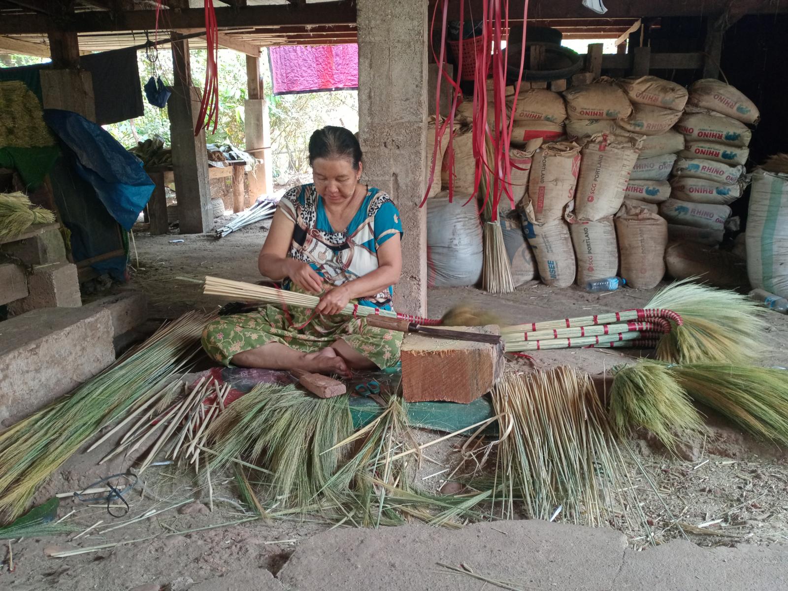 တံမြက်စည်းပြုလုပ်ရာတွင် တံမြက်စည်းအပင်များကို နေလှန်း၍ အပွင့်များကိုရိုက်ချွေခြင်း၊ အပင်ဖျားကိုအရွယ်ညီခုတ်ခြင်း၊ အရိုးတံကိုခုတ်ချွန်ခြင်း၊ ရိုးတံနှင့်အရွယ်ညီ ခုတ်ထားသော တံမြက်စည်းပင်များကို စုကိုင်၍ ကြိုးဖြင့်တင်းအောင် ချည်ကာ အဆင့်ဆင့်ပြုလုပ်ပြီးမှသာ တံမြက်စည်းချောတစ်လက်ကိုရရှိပါကြောင်း၊ အဆိုပါတံမြက်စည်းချောများကို ဈေးဆိုင်များသို့ ဖောက်သည်သွင်းခြင်း၊ လက်ဆောင်ပေးခြင်း၊ အိမ်သို့လာရောက်ဝယ်ယူခြင်းများလည်းရှိပြီး တံမြက်စည်းချောတစ်လက်ကို ၃၅၀၀ကျပ် အထိ ဈေးရရှိကြောင်း သိရသည်။