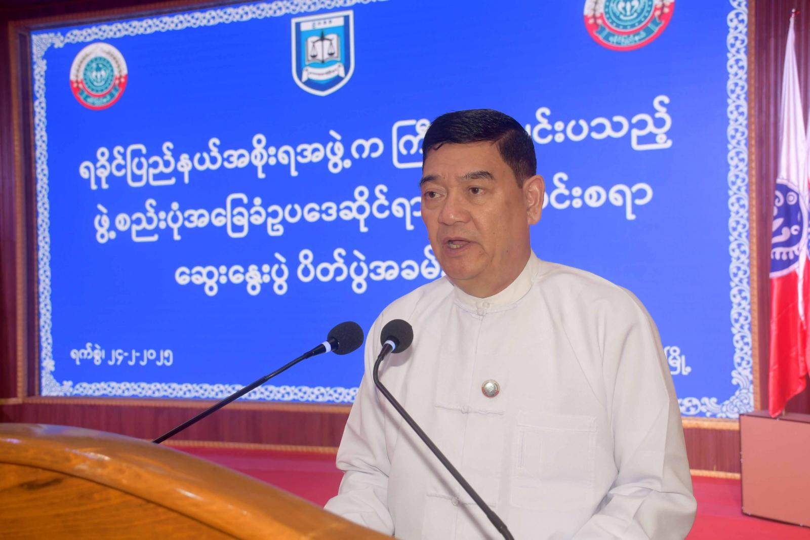 အခမ်းအနားတွင် ရခိုင်ပြည်နယ်ဝန်ကြီးချုပ် ဦးထိန်လင်းက ဖွဲ့စည်းပုံအခြေခံဥပဒေဆိုင်ရာ သိကောင်းစရာဆွေးနွေးပွဲတွင် ဖွဲ့စည်းပုံအခြေခံဥပဒေများသမိုင်း၊ သဘောသဘာဝများနှင့် ဖွဲ့စည်းပုံအခြေခံဥပဒေတွင် ပြဌာန်းထားသော နိုင်ငံတော်၊ နိုင်ငံတော်၏အခြေခံမူများ၊ နိုင်ငံတော် တည်ဆောက်ပုံ၊ ဥပဒေပြုရေး၊ အုပ်ချုပ်ရေး၊ တရားစီရင်ရေး၊ ဥပဒေပြုရေးအခန်းကဏ္ဍတွင်ပါဝင်သော ပြည်ထောင်စုလွှတ်တော်၊ ပြည်သူ့လွှတ်တော်၊ အမျိုးသားလွှတ်တော်တို့၏ လုပ်ငန်းဆောင်တာများ၊ အုပ်ချုပ်ရေးတွင်ပါသော သမ္မတရွေးချယ်တင်မြှောက်ပုံ၊ အမျိုးသားကာကွယ်ရေး နှင့်လုံခြုံရေးကောင်စီဖွဲ့စည်းပုံ၊ ပြည်ထောင်စုအစိုးရ ဖွဲ့စည်းပုံ၊ တိုင်းဒေသကြီး၊ ပြည်နယ်အစိုးရဖွဲ့စည်းပုံများ၊ အရေးပေါ်ကာလပြဋ္ဌာန်းချက်များ၊ ဖွဲ့စည်းပုံအခြေခံဥပဒေကို ပြင်ဆင်နိုင်သော ဖွဲ့စည်းပုံအခြေခံဥပဒေပါ ပြဋ္ဌာန်းချက်များကို အလေးထားပြီး ပို့ချဆွေးနွေးသကဲ့သို့ ဆွေးနွးပွဲတက်ရောက်လာကြသည့် ပြည်နယ်အဆင့်ဌာနဆိုင်ရာများနှင့် အရာထမ်း များကလည်း စိတ်ဝင်တစားလေ့လာမှတ်သား ပါဝင်ဆွေးနွေးကြသည်ဟုသိရှိရကြောင်း၊ နိုင်ငံတော်စီမံအုပ်ချုပ်ရေးကောင်စီက တာဝန်ယူစဉ်ကာလတွင် ရှေ့လုပ်ငန်းစဉ်(၅)ရပ်၊ ဦးတည်ချက်(၉) ရပ်ချမှတ်ပြီး ဆောင်ရွက်လျက်ရှိရာ ရှေ့လုပ်ငန်းစဉ်(၅)ရပ်ထဲမှ တစ်ရပ်ဖြစ်သော လွတ်လပ်ပြီး တရားမျှတသော ပါတီစုံဒီမိုကရေစီအထွေထွေရွေးကောက်ပွဲကိုကျင်းပပြီး အနိုင်ရသည့်ပါတီအား ဒီမိုကရေစီစံနှုန်းများနှင့်အညီ နိုင်ငံတော်တာဝန်အား လွှဲအပ်ပေးရန်ဆိုသည့် လုပ်ငန်းစဉ်ကို အလေးထားဆောင်ရွက်လျက်ရှိကြောင်း၊ ရွေးကောက်ပွဲသည် တိုင်းပြည်၏ဂုဏ်သိက္ခာနှင့် သက်ဆိုင်သော အမျိုးသားရေးတာဝန်တစ်ရပ်ဖြစ်ကြောင်း၊ လွတ်လပ်ပြီးတရားမျှတမှသာ ပြည်သူများလိုလား တောင်းတသော ပါတီစုံဒီမိုကရေစီစနစ်ခိုင်မြဲစေပြီး နိုင်ငံ၏နိုင်ငံရေးသမိုင်းနှင့် နိုင်ငံတကာအသိုင်းအဝိုင်းတွင်လည်း ဂုဏ်သိက္ခာမြင့်မားစေမည်ဖြစ်ကြောင်း၊ ထို့ကြောင့်နိုင်ငံ့ဝန်ထမ်းများအနေဖြင့် မိမိနိုင်ငံတော်၏ ဖွဲ့စည်းပုံအခြေခံဥပဒေ၊ လွှတ်တော်ဆိုင်ရာ ဥပဒေများကို သိရှိရန်လိုအပ်မည်ဖြစ်ကြောင်း၊ ရွေးကောက်ပွဲနှင့် စပ်လျဉ်း၍ကျရာတာဝန်က ပါဝင်နိုင်အောင် အသင့်ရှိနေရန်လည်း လိုအပ်မည်ဖြစ်ကြောင်း၊ ယခုဆွေးနွေးပွဲတွင် နိုင်ငံတော်ဖွဲ့စည်းပုံအခြေခံဥပဒေပြဋ္ဌာန်းချက်များမှ သိကောင်းစရာများကို လေ့လာသိရှိခွင့်ရရှိသည့်အတွက် ဥပဒေဗဟုသုတရရှိကြမည်ဖြစ်ကြောင်း၊ အသိပညာဗဟုသုတကြွယ်ဝခြင်းသည် အရာရာကို ဖန်တီးနိုင်စွမ်းရှိသော စွမ်းအားသတ္တိများရှိကြောင်း၊ ထို့ကြောင့် ယခုဆွေးနွေးပွဲက ရရှိလာသောဥပဒေဗဟုသုတနှင့်
