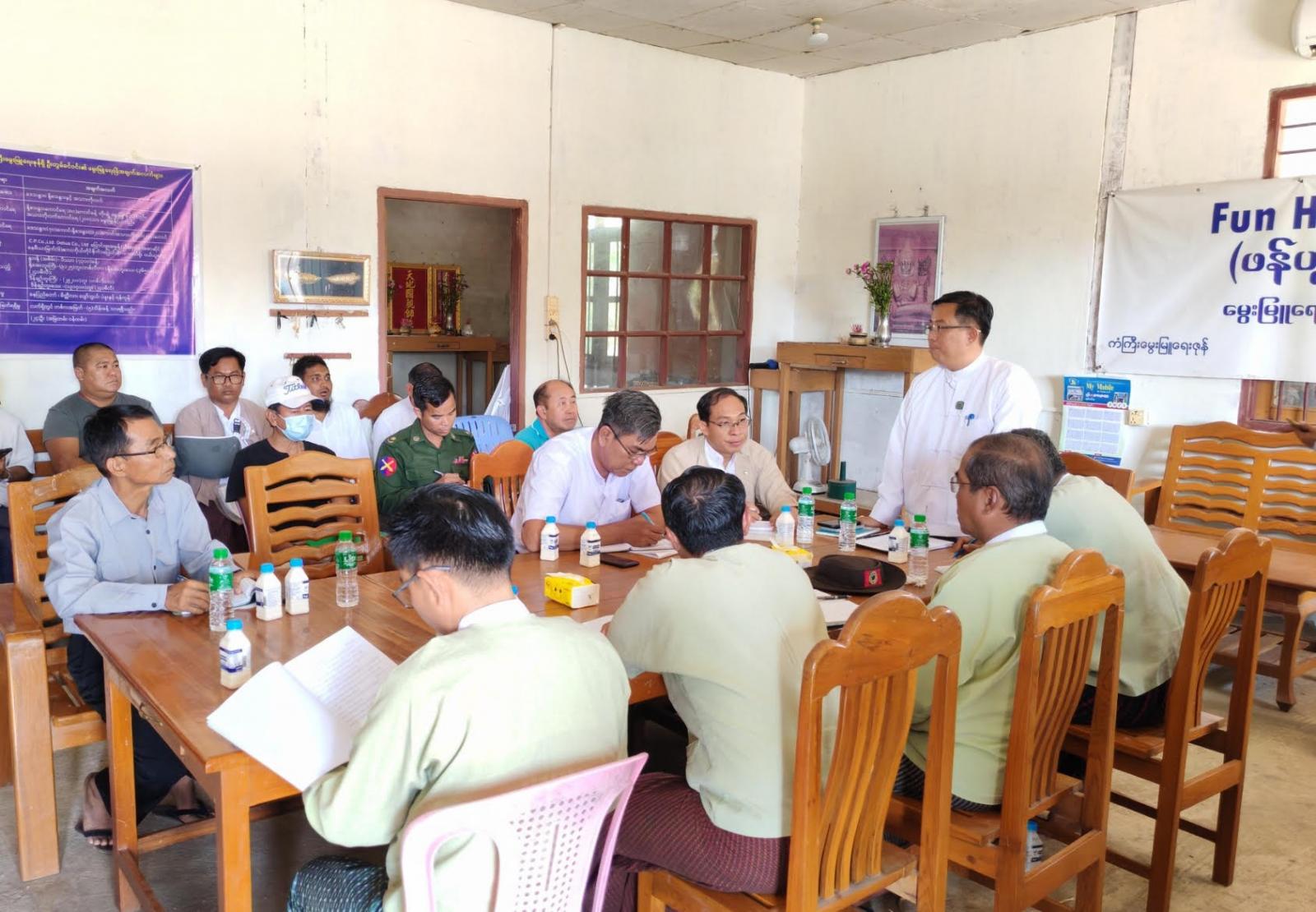 ထို့နောက် နေပြည်တော်ကောင်စီဝင်နှင့် တာဝန်ရှိသူများသည် တပ်ကုန်းမြို့နယ်အထွေထွေအုပ်ချုပ်ရေးဦးစီးဌာနတွင် မြို့နယ်အဆင့် စိုက်ကြပ်အဖွဲ့ဝင်များနှင့်တွေ့ဆုံကာ နေပြည်တော်ကောင်စီဝင်က ဒေသဖွံ့ဖြိုးရေးလုပ်ငန်းများနှင့် စိုက်ပျိုးထွက်ရှိလာသည့် သီးနှံများ၊ ဆီထွက်သီးနှံများ ကိုယ်တိုင်ကြိတ်ခွဲရောင်းချနိုင်ရေး၊ တစ်နှစ်လျှင် သုံးသီးစိုက်ပျိုးနိုင်ရေး၊ ဆီထွက်သီးနှံများ တိုးချဲ့စိုက်ပျိုးနိုင်ရေးနှင့် သီးထပ်စွမ်းအားများ တိုးတက်လာစေရေးတို့ကို အလေးထားဆောင်ရွက်ကြစေလိုကြောင်းနှင့် မြေအောက်ရေ စက်ရေတွင်းတူးဖော်၍ ဆိုလာစနစ်ဖြင့် ရေတင်စိုက်ပျိုးနိုင်ရေး၊ နွေရာသီကျောင်းပိတ်ချိန်ကာလအတွင်း ကျောင်းသား/သူများ၏ ကာယ၊ ဉာဏဆိုင်ရာ သင်တန်းများ ဖွင့်လှစ်ပို့ချနိုင်ရေး၊ သဘာဝဘေးအန္တရာယ်ဆိုင်ရာများ မျှော်မှန်းတွက်ဆပြီး ကာကွယ်ရေးလုပ်ငန်းများ ကြိုတင်စီစဥ်ဆောင်ရွက်ရေး ဆွေးနွေးမှာကြားခဲ့ပြီးနောက် မြို့နယ်အထွေထွေအုပ်ချုပ်ရေးဦးစီးဌာနရုံးဝင်းအတွင်း သန့်ရှင်းသာယာလှပရေးဆောင်ရွက်နေမှုအခြေအနေများအား ကြည့်ရှုစစ်ဆေးခဲ့ကြောင်း သိရသည်။