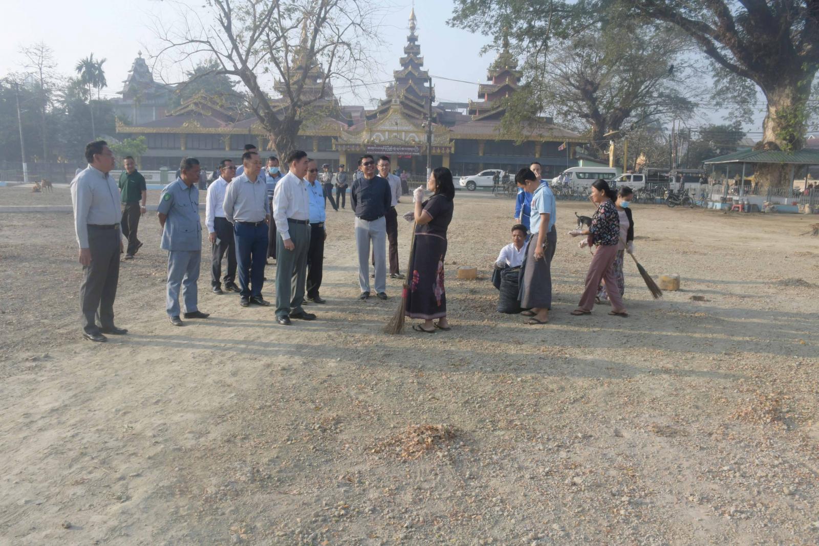ဦးစွာ ပြည်နယ်ဝန်ကြီးချုပ်နှင့်အဖွဲ့သည် စစ်တွေမြို့၊ အတုလမာရဇိန်ပြည်လုံးချမ်းသာဘုရားကြီး သွားရောက်ဖူးမြော်ကြည်ညိုပြီး ဌာနဆိုင်ရာဝန်ထမ်းများက ဘုရားကြီးသိမ်တော်အတွင်း စုပေါင်းသန့်ရှင်းရေး ဆောင်ရွက်နေမှုကို လှည့်လည်ကြည့်ရှုအားပေးကာ လိုအပ်သည်များကို တာဝန်ရှိသူများနှင့်ပေါင်းစပ်ညှိနှိုင်းပေးခဲ့သည်။ ဆက်လက်၍ ပြည်နယ်ဝန်ကြီးချုပ်နှင့်အဖွဲ့သည် ဝင်္ကဘာကွင်း အတွင်းဌာနဆိုင်ရာဝန်ထမ်းများ စုပေါင်းသန့်ရှင်းဆောင်ရွက်နေမှုကို လှည့်လည်ကြည့်ရှုအားပေးပြီး ဝင်္ကဘာကွင်းအဆင့်မြှင့်ခြင်း လုပ်ငန်းဆောင်ရွက်ပြီးစီးနေမှုကို လှည့်လည်ကြည့်ရှုစစ်ဆေးကြသည်။