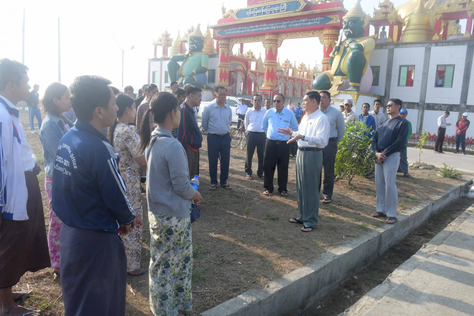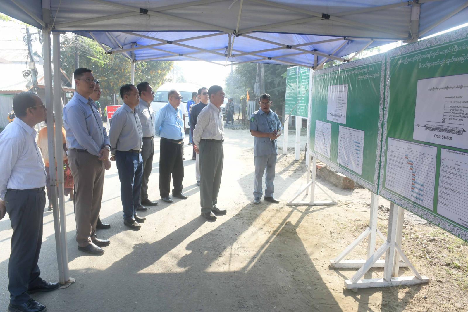 ထို့နောက် ပြည်နယ်ဝန်ကြီးချုပ်နှင့်အဖွဲ့သည် ကျောင်းကြီးလမ်းရပ်ကွက်၊ ကျောင်းကြီးလမ်း၊ လမ်းမကြီးမှ ကမ်းနားလမ်းအထိ လမ်းဘေးဝဲယာတိုးချဲ့ကွန်ကရစ်ခင်းခြင်း၊ ပလက်ဖောင်းနှင့် ရေမြောင်းပြုလုပ်ခြင်း လုပ်ငန်းဆောင်ရွက်နေမှုကို သွားရောက်ကြည့်ရှုစစ်ဆေးကြရာ ပြည်နယ်စည်ပင် သာယာရေးအဖွဲ့မှ တာဝန်ရှိသူများက လုပ်ငန်းဆောင်ရွက်နေမှုအခြေအနေများကို ရှင်းလင်းတင်ပြ သည်။ တင်ပြချက်များအပေါ် ပြည်နယ်ဝန်ကြီးချုပ်က ပြန်လည်ဆွေးနွေးပေးပြီး ကွန်ကရစ်ခင်းခြင်းလုပ်ငန်းနှင့်အတူ ရေစီရေလာကောင်းမွန်ရေး ရေမြောင်းများတူးဖော်ခြင်းလုပ်ငန်းများကို ဆောင်ရွက်သွားကြရန် မှာကြားသည်။ ဆက်လက်၍ ပြည်နယ်ဝန်ကြီးချုပ်နှင့်အဖွဲ့သည် လုပ်ငန်းဆောင်ရွက်နေမှုများအား လှည့်လည်ကြည့်ရှု စစ်ဆေးကြသည်။