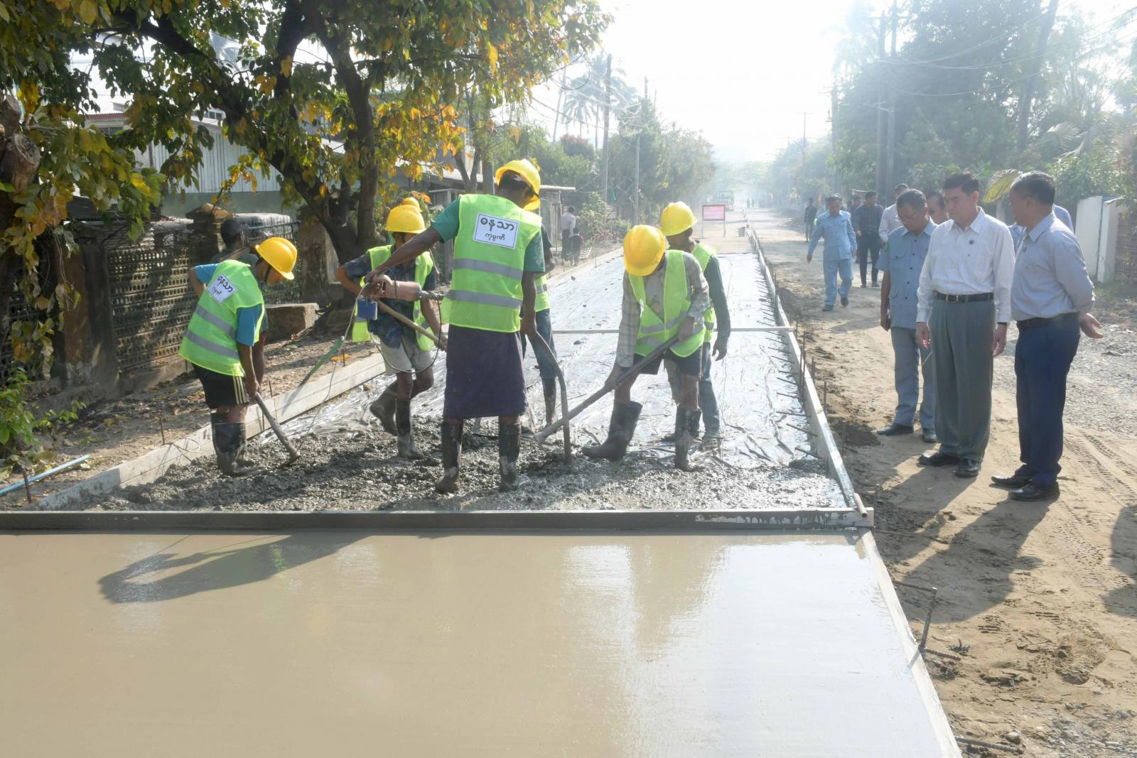 ဆက်လက်၍ ပြည်နယ်ဝန်ကြီးချုပ်နှင့်အဖွဲ့သည် ကျောင်းကြီးလမ်းရပ်ကွက်၊ ကျောင်းကြီး လမ်းအား မင်းဘာကြီးလမ်းမှ ချင်းပျံလမ်းဆုံထိ ပြည်နယ်ခွင့်ပြုရန်ပုံငွေဖြင့် ကွန်ကရစ်ခင်းခြင်း လုပ်ငန်း ဆောင်ရွက်နေမှုကို သွားရောက်ကြည့်ရှုစစ်ဆေးကြသည်။ ထိုသို့သွားရောက်ကြည့်ရှု စစ်ဆေးစဉ် ပြည်နယ်စည်ပင်သာယာရေးအဖွဲ့မှ တာဝန်ရှိသူများက လုပ်ငန်းစတင်ဆောင်ရွက်နေမှု အခြေအနေများနှင့် ဆက်လက်ဆောင်ရွက်မည့် အခြေအနေများကို ရှင်းလင်းတင်ပြကြရာ ပြည်နယ်ဝန်ကြီးချုပ်က လိုအပ်သည်များကို တာဝန်ရှိသူများနှင့် ပေါင်းစပ်ညှိနှိုင်းပေးပြီး ကွန်ကရစ်ခင်းခြင်းလုပ်ငန်း ဆောင်ရွက်နေမှုကို လှည့်လည် ကြည့်ရှုစစ်ဆေးခဲ့ကြသည်။