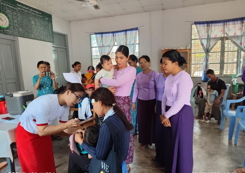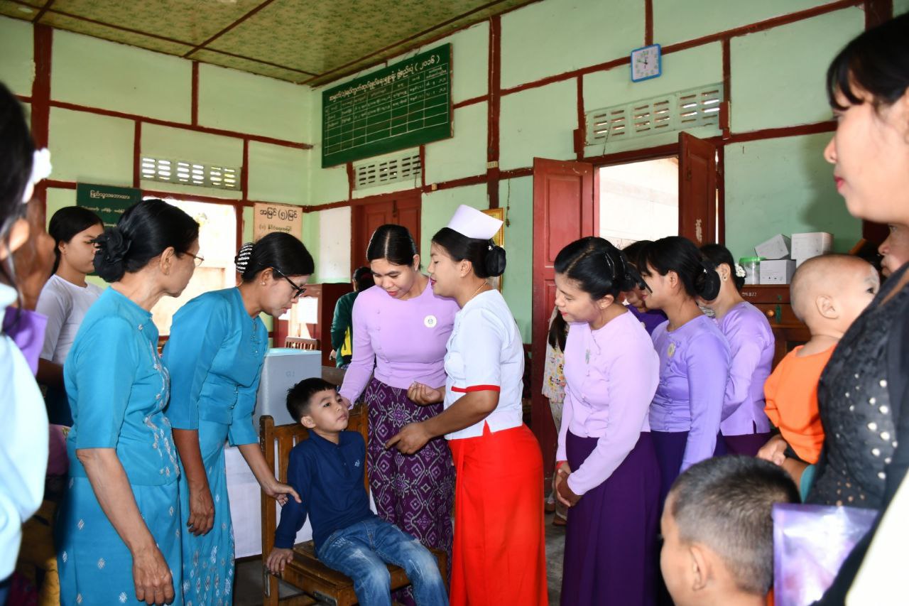 ထို့နောက် ခုတင် (၁၀၀) ဆေးရုံအုပ်၊ မြို့နယ်မိခင်နှင့်ကလေးစောင့်ရှောက်ရေးအသင်းဥက္ကဋ္ဌ ဒေါက်တာသဇင်မြင့်နှင့် အသင်းဝင်များ၊ မြို့နယ်အမျိုးသမီးရေးရာအဖွဲ့ဝင်များ တာဝန်ရှိသူများနှင့် ကျန်းမာရေးဝန်ထမ်းများက အသက်နှစ်လမှ ငါးနှစ်အထိ ကလေးငယ်များအား ပိုလီယိုရောဂါ ကာကွယ်ဆေးများ တိုက်ကျွေးခဲ့ကြောင်း သိရသည်။