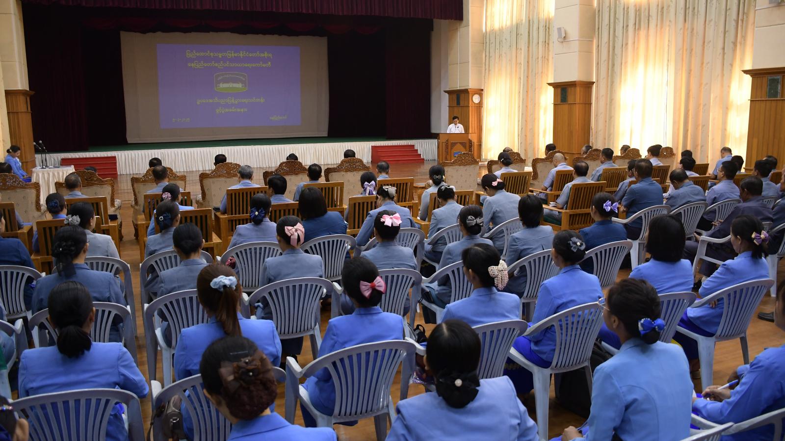 နေပြည်တော်စည်ပင်သာယာရေးကော်မတီတွင် တာဝန်ထမ်းဆောင်နေသည့် အရာထမ်း၊ အမှုထမ်းများအနေဖြင့် သက်ဆိုင်ရာတည်ဆဲဥပဒေများ၊ ဥပဒေပြဋ္ဌာန်းချက်များကို သိရှိနားလည်ကျင့်သုံးနိုင်စေရန်အတွက် ဖွင့်လှစ်သည့် ဥပဒေအသိပညာပြန့်ပွားရေး သင်တန်းဖွင့်ပွဲအခမ်းအနားကို ယနေ့နံနက် ၉ နာရီတွင် နေပြည်တော်စည်ပင်သာယာရေးကော်မတီ မြို့တော်ခန်းမရှိ မင်္ဂလာခန်းမ၌ ကျင်းပပြုလုပ်ရာ နေပြည်တော်စည်ပင်သာယာရေးကော်မတီဥက္ကဋ္ဌ၊ မြို့တော်ဝန် ဦးသန်းထွန်းဦး တက်ရောက်၍ သင်တန်းဖွင့်ပွဲအမှာစကားပြောကြားသည်။