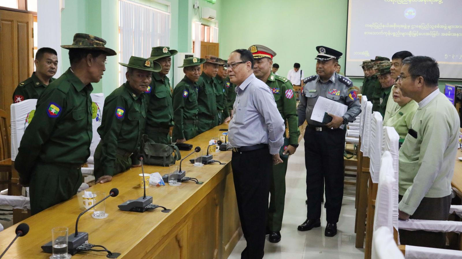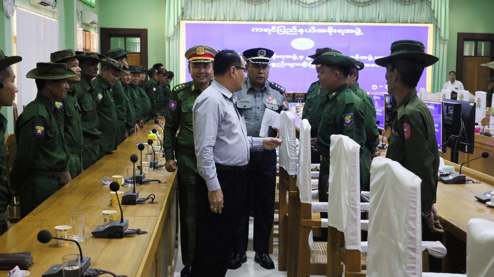 ယင်းနောက် ပြည်နယ်ဝန်ကြီးချုပ်နှင့်တာဝန်ရှိသူများသည် ဌာနေပြည်သူ့စစ်အဖွဲ့များအား ရင်းနှီးနွေးထွေးစွာတွေ့ဆုံနှုတ်ဆက်၍ အားပေးစကားများပြောကြားခဲ့ကြောင်း သိရသည်။