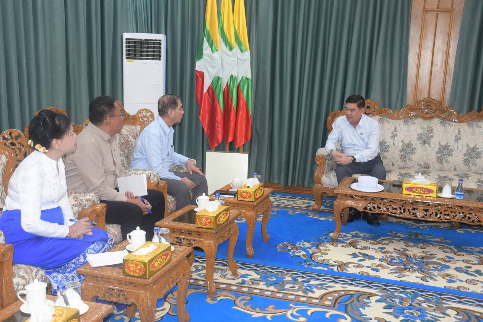 ဦးစွာ ပြည်နယ်ဝန်ကြီးချုပ် ဦးထိန်လင်း၊ ဒုတိယဝန်ကြီး ဦးစိုးကြည်၊ ပြည်နယ်အစိုးရအဖွဲ့ဝင်များနှင့် စစ်တွေတပ်နယ်မှ တပ်မတော်အဆင့်မြင့်အရာရှိကြီးများသည် ရခိုင်ပြည်နယ်အစိုးရအဖွဲ့ရုံး၊ ပြည်နယ်ဝန်ကြီးချုပ်၊ ဧည့်ခန်း၌ စစ်တွေမြို့နယ်၊ ခေါင်းဒုက္ကာ (၂) IDP စခန်းမှ မီးဘေးသင့်ပြည်သူများအား ကူညီကယ်ဆယ်ရေးလုပ်ငန်းများဆောင်ရွက်ထားရှိမှုနှင့် ဆက်လက်ဆောင်ရွက်မည့်အစီအမံများနှင့် ပတ် သက်၍ ဆွေးနွေးကြသည်။