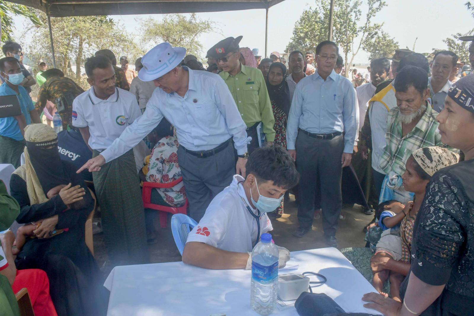 ထို့နောက် ပြည်နယ်ဝန်ကြီးချုပ်နှင့်အဖွဲ့သည် ပြည်နယ် ပြည်သူ့ကျန်းမာရေးဦးစီးဌာနမှ ပြည်နယ်ဦးစီးမှူး ဒေါက်တာ ကြည်လွင် ဦးဆောင်ပြီး ဆရာဝန်၊ သူနာပြုများက မီးဘေးသင့်ပြည်သူများအား ကျန်းမာရေးစောင့်ရှောက်ပေးနေမှုကို ကြည့်ရှုအားပေးကြပြီး လိုအပ်သည်များကို တာဝန်ရှိသူများနှင့် ပေါင်းစပ်ညှိနှိုင်းပေးခဲ့သည်။