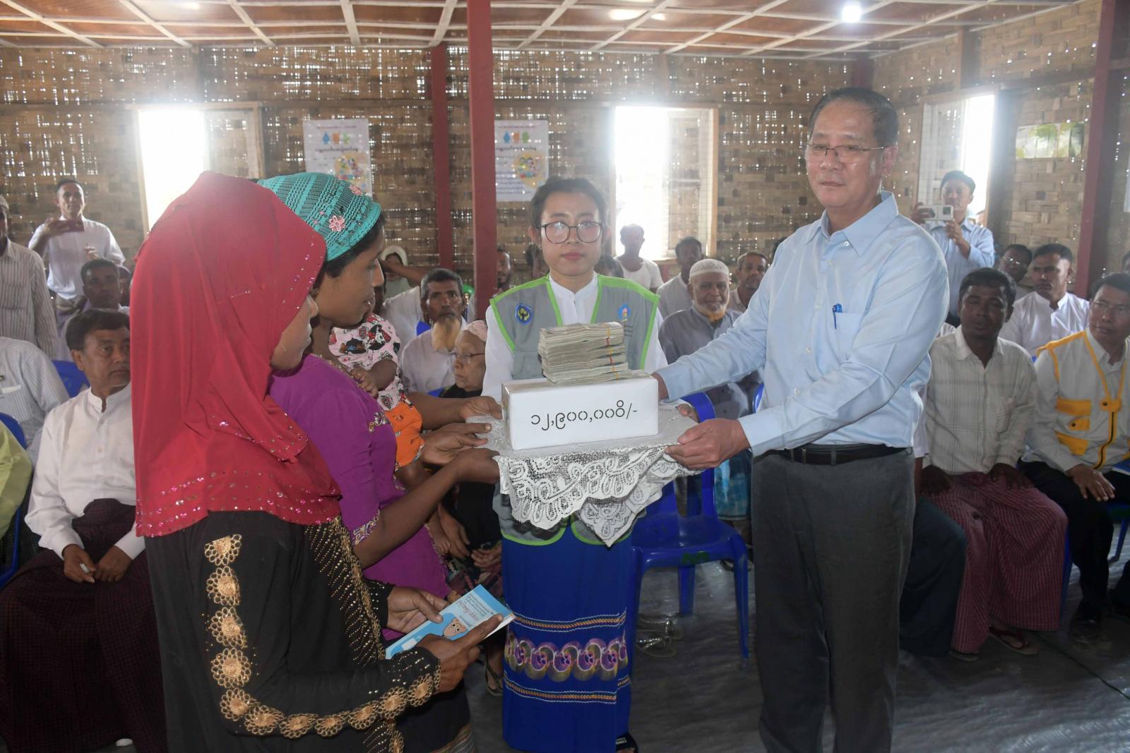 စစ်တွေမြို့နယ်၊ ခေါင်းဒုက္ကာ (၂) IDP စခန်းမှ မီးဘေးသင့်ပြည်သူများအား လူမှုဝန်ထမ်း၊ ကယ်ဆယ်ရေးနှင့် ပြန်လည်နေရာချထားရေးဝန်ကြီးဌာန၊ ဘေးအန္တရာယ်ဆိုင်ရာစီမံခန့်ခွဲမှုဦးစီးဌာနမှ ဆန်ရိက္ခာတစ်လစာငွေကျပ် ၁၉,၃၄၁,၀၀၀၊ ကယ်ဆယ်ရေးပစ္စည်း (၁၆) မျိုးပါ kit ပုံး (၃၁၄) ပုံး၊ Jerry Can ၆၂၈ ခု၊ ASEAN Family Tent ၃၁၄ ခု၊ ဆန်ရိက္ခာ (၇) ရက်စာအတွက် ၂၅,၃၈၀,၀၀၀၊ စားအုန်းဆီ (၇) စာ ၁၁၂ ပိဿာ ၅၀ ကျပ်သား၊ အိမ်သုံးဆား (၇) ရက်စာ ၁၁၂ ပိဿာ ၈၂ ကျပ်သား၊ ကုလားပဲ (၇) ရက်စာ ၇၅၂ ပိဿာ ၁၅ ကျပ်သား၊ ကျား/ မဝတ်အင်္ကျီအထည် ၂၁၀၊ မီးဘေးသင့်ထိခိုက်လွယ်အုပ်စုများအတွက် ထောက်ပံ့ငွေကျပ် ၁၂,၉၀၀,၀၀၀ တို့ကို ပေးအပ်ထားပြီးဖြစ် ကြောင်း သိရသည်။