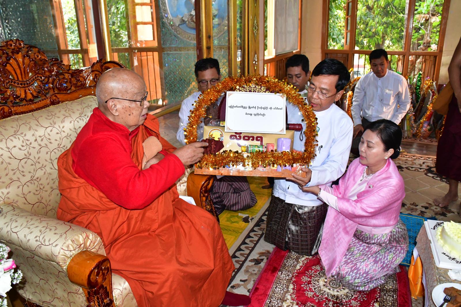 ထို့နောက် နေပြည်တော်ကောင်စီဥက္ကဋ္ဌ ဦးသန်းထွန်းဦးနှင့် ဇနီး၊ နေပြည်တော်ကောင်စီဝင်များနှင့် ဇနီးများ၊ အလှူရှင်များက ပေါက်မြိုင်ကျောင်းတိုက် ပဓာနနာယက သက်တော်ရှည်ဆရာတော် အဘိဓဇမဟာ ရဋ္ဌဂုရု ဘဒ္ဒန္တဇနိန္ဒထံ လှူဖွယ်ဝတ္ထုပစ္စည်းများ ဆက်ကပ်လှူဒါန်းကြသည်။