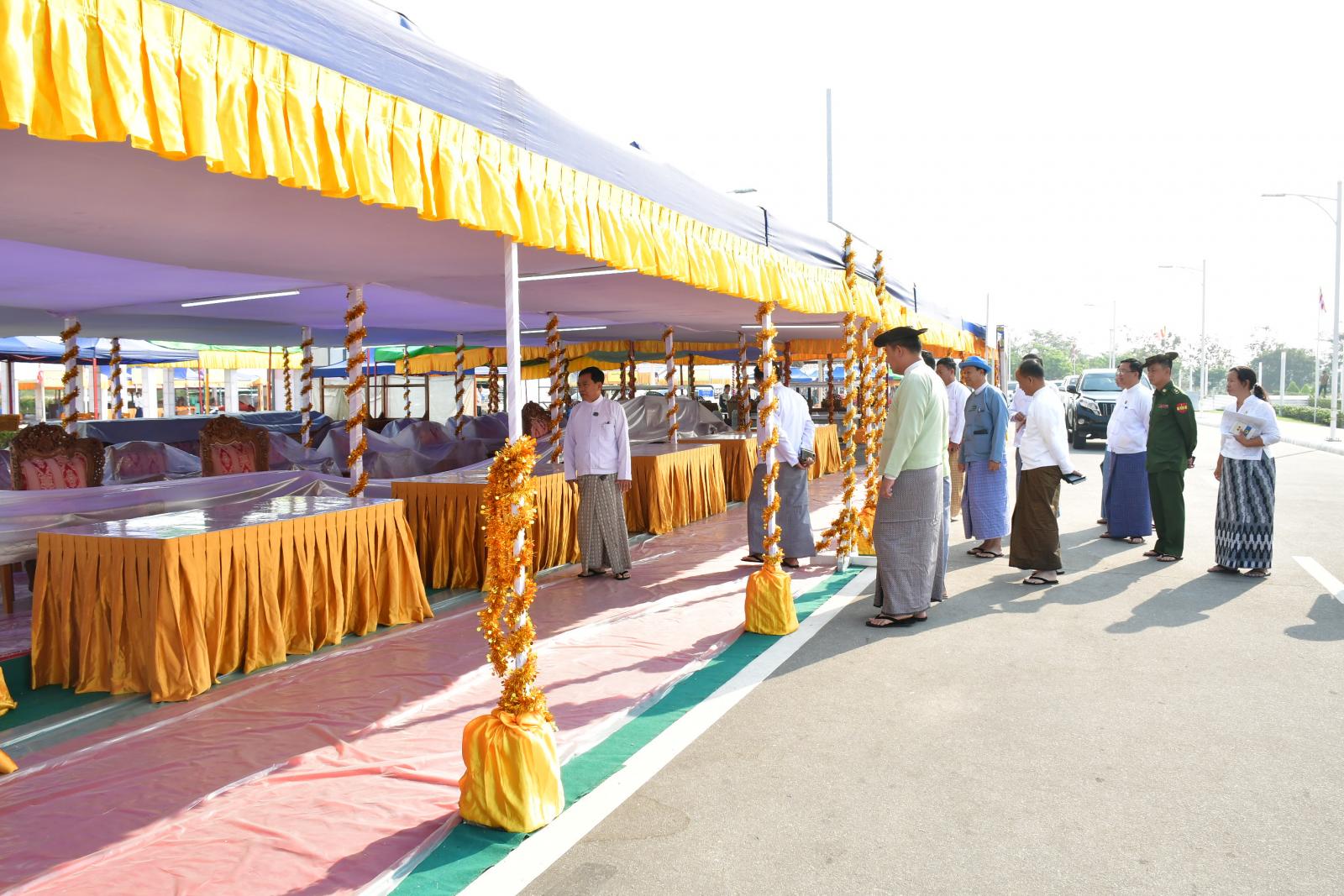 ထို့နောက် နေပြည်တော်ကောင်စီဥက္ကဋ္ဌ ဦးသန်းထွန်းဦးသည် ၂၀၂၅ ခုနှစ်၊ သာသနာတော်ဆိုင်ရာ ဘွဲတံဆိပ်တော်များ ဆက်ကပ်အပူဇော်ခံတော်မူကြမည့် ဘွဲ့ခံဆရာတော်၊ သံဃာတော်များနှင့် ဘွဲခံသီလရှင်ဆရာကြီးများအား နေပြည်တာ်၊ မာရဝိဇယဗုဒ္ဓဥယျာဉ်တော်ပရိဝုဏ်အတွင်း၌ ဆွမ်းဆန်စိမ်းနှင့် လှူဖွယ်ဝတ္ထုပစ္စည်းများ ဆက်ကပ်လောင်းလှူမည့် မဏ္ဍပ်များ တည်ဆောက်နေမှုကို ကြည့်ရှုစစ်ဆေးပြီး လိုအပ်သည်များကို တာဝန်ရှိသူများအား မှာကြားခဲ့ကြောင်း သိရသည်။