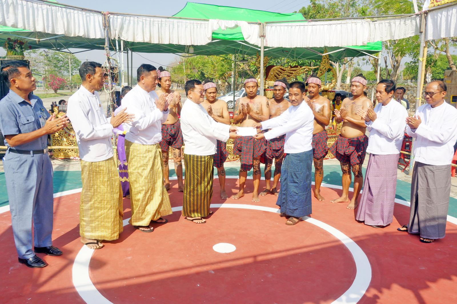 ထို့နောက် နေပြည်တော်ကောင်စီဝင် ဦးမြင့်စိုးနှင့် တာဝန်ရှိသူများက (၁၇) ကြိမ်မြောက် ဗုဒ္ဓပူဇနိယပွဲတော် အထိမ်းအမှတ် မြန်မာ့ရိုးရာခြင်းအလှခတ် ဖျော်ဖြေနေမှုအား ကြည့်ရှုအားပေးပြီး နေပြည်တော်ကောင်စီဝင်နှင့် ဥပ္ပါတသန္တိစေတီတော်မြတ်ကြီးဂေါပကအဖွဲ့ ဥက္ကဋ္ဌတို့က မြန်မာ့ရိုးရာခြင်းအလှခတ် ဖျော်ဖြေမှုတွင် ပါဝင်ကူညီခဲ့သူများအား ဂုဏ်ပြုချီးမြှင့်ငွေများ ပေးအပ်ခဲ့သည်။