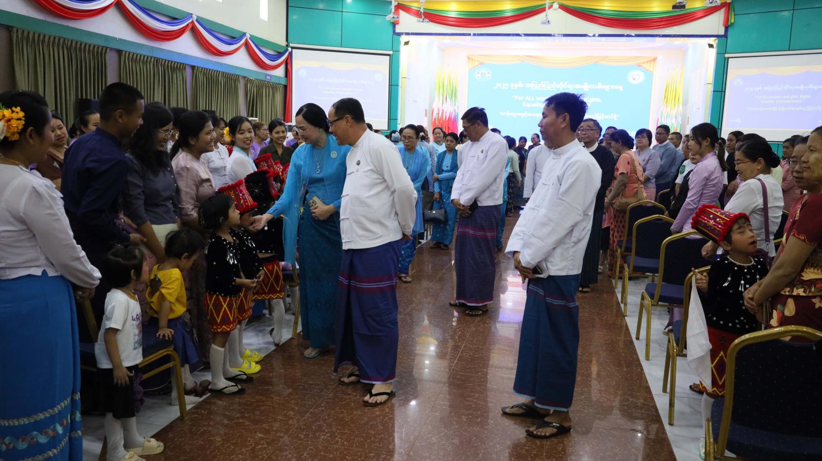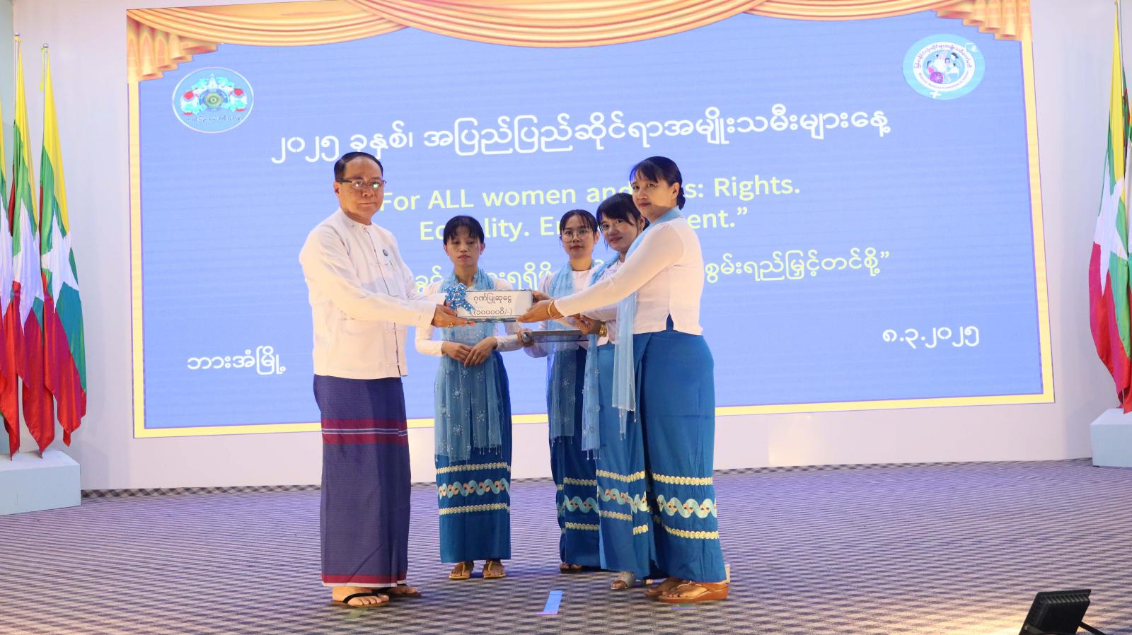 ထို့နောက် ကုလသမဂ္ဂအထွေထွေအတွင်းရေးမှူးချုပ်မှ ပေးပို့သောသဝဏ်လွှာနှင့် အပြည်ပြည် ဆိုင်ရာအမျိုးသမီးများနေ့အထိမ်းအမှတ် မြန်မာနိုင်ငံလုံးဆိုင်ရာအမျိုးသမီးအဖွဲ့ဝင် အမျိုးသမီးအဖွဲ့အစည်းများ၏ အောင်မြင်တိုးတက်မှု Video Clip တို့ကို ကြည့်ရှုခဲ့ကြပြီး မူလတန်းကြိုကျောင်းများမှ ကလေးသူငယ်များနှင့် ဆရာမများက တေးသီချင်းများဖြင့် သီဆိုကပြဖျော်ဖြေကြရာ ပြည်နယ် ဝန်ကြီးချုပ်၊ ပြည်နယ်အမျိုးသမီးရေးရာအဖွဲ့နှင့် ပြည်နယ်မိခင်နှင့်ကလေးစောင့်ရှောက်မှုကြီးကြပ်ရေးအဖွဲ့နာယကနှင့်တက်ရောက်လာသူများက ဂုဏ်ပြုဆုများပေးအပ်ချီးမြှင့်ကြသည်။