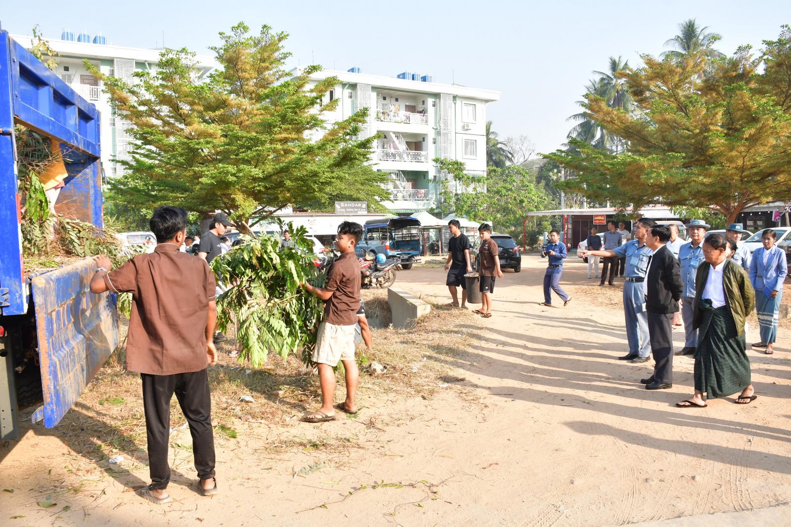 နေပြည်တော်ကောင်စီဥက္ကဋ္ဌ ဦးသန်းထွန်းဦးသည် နေပြည်တော်ကောင်စီဝင်များ၊ နေပြည်တော်စည်ပင်သာယာရေးကော်မတီ ဒုတိယမြို့တော်ဝန်၊ ကော်မတီဝင်များနှင့် ဌာနကြီးမှူးများ၊ ဌာနဆိုင်ရာ တာဝန်ရှိသူများလိုက်ပါလျက် ယနေ့နံနက်ပိုင်းတွင် ဇမ္ဗူသီရိမြို့နယ်၊ သုခသိဒ္ဓိရပ်ကွက်ရှိ သုခတော်ဝင်အိမ်ရာအပိုင်း(၁)အတွင်း စုပေါင်းသန့်ရှင်းရေးလုပ်ငန်းများ ဆောင်ရွက်နေမှုကို သွားရောက်ကြည့်ရှုစစ်ဆးသည်။