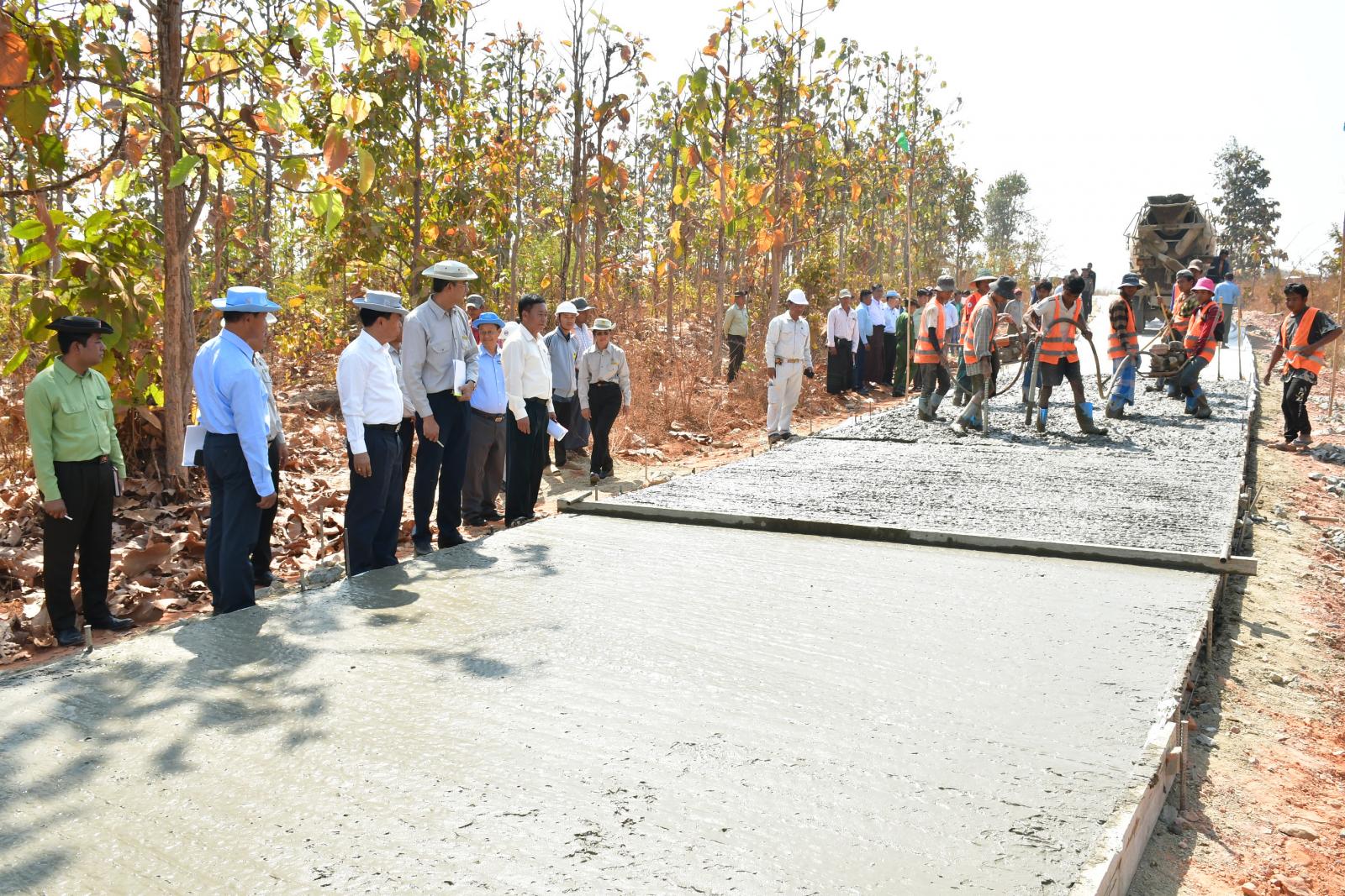 ယင်းနောက် နေပြည်တော်ကောင်စီဥက္ကဋ္ဌ ဦးသန်းထွန်းဦးသည် လယ်ဝေးမြို့နယ်၊ ကံလှ- ကန်သာ- ကုန်းပေါ်စု- မဒေါ့ပင်- ဂုဏ်မင်းမြှောင်- ထိန်တော- ခြင်ပစ်- ဥသျှစ်လှိုင်း ဆက်သွယ်သည့်လမ်းအားလမ်းဦးစီးဌာန ကြီးကြပ်ရေးအဖွဲ့မှ ကွန်ကရစ်လမ်းခင်းခြင်းလုပ်ငန်းသို့ သွားရောက် ကြည့်ရှုစစ်ဆေးရာ တာဝန်ရှိသူများက လုပ်ငန်းဆောင်ရွက်နေမှုအခြေအနေများကို ရှင်းလင်းတင် ပြကြပြီး နေပြည်တော်ကောင်စီဥက္ကဋ္ဌ ဦးသန်းထွန်းဦး သတ်မှတ်အရည်အသွေးပြည့်မီးစေရေး၊ ရေရှည်ခိုင်ခံစေရေး၊ သတ်မှတ်ကာလအတွင်းပြီးစီးရေးကို အလေး ထားဆောင်ရွက်ရမှာ ဖြစ်ကြောင်းနှင့် လိုအပ်သည်များကို တာဝန်ရှိသူများအားမှာကြားသည်။
