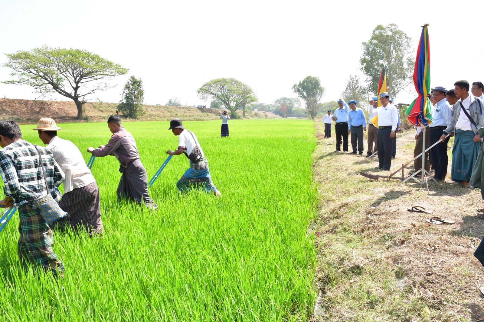 ဆက်လက်၍ နေပြည်တော်ကောင်စီဥက္ကဋ္ဌ ဦးသန်းထွန်းဦးသည် လယ်ဝေးမြို့နယ်၊ ရှမ်းစုကျေးရွာအုပ်စု၊ ကွင်းအမှတ် ၁၈၄၅ တောင်သူ ဦးကိုရီ၏ နွေစပါးစိုက်ခင်းတွင် သမန်းနှိုးသရုပ်ပြခြင်းသို့ သွားရောက်ကြည့်ရှုအားပေးရာ နေပြည်တော်စိုက်ပျိုးရေးဦးစီးဌာန ဒုတိယတိုင်းဦးစီးမှူးက နွေစပါးစိုက်ပျိုးနေမှု အခြေအနေများ၊ မျိုးစေ့ချကိရိယာဖြင့် စိုက်ပျိုးရာတွင်လိုက်နာဆောင်ရွက်ရ မည့်အချက်များနှင့် ရှောင်ကြဉ်ရမည့်အချက်များ၊ ဘောင်ကြီးတင်စိုက်ပျိုးနည်းစနစ်များကို ရှင်းလင်းတင်ပြပြီး နေပြည်တော်ကောင်စီဥက္ကဋ္ဌ ဦးသန်းထွန်းဦး စိုက်ပျိုးရေးကဏ္ဍဖွံ့ဖြိုးတိုးတက်ရေးအတွက် ကြိုးစားဆောင်ရွက်ကြရန်မှာကြားကာ လိုအပ်သည်များကို ပေါင်းစပ်ဆောင်ရွက်ပေးခဲ့သည်။