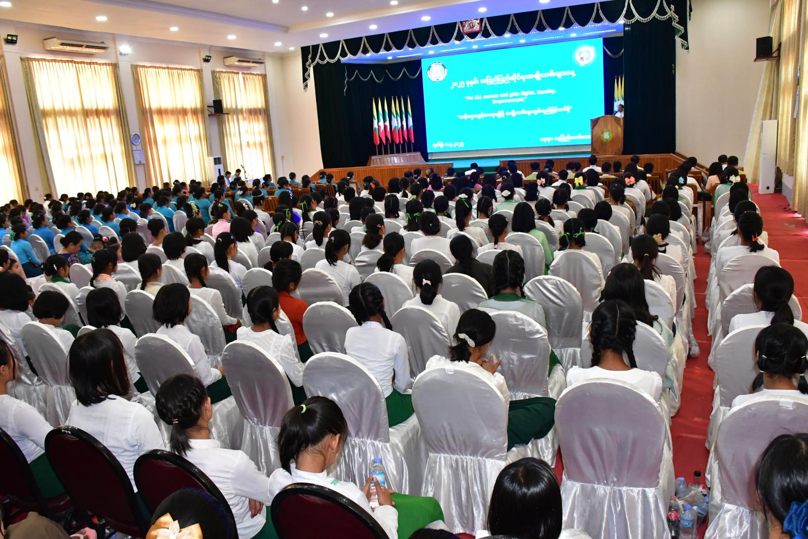 ယင်းနောက် အပြည်ပြည်ဆိုင်ရာ အမျိုးသမီးများနေ့အခမ်းအနား၏ Video Clip ကိုပြသပြီး နိုင်ငံတော်ကာကွယ်ရေးတက္ကသိုလ် ကိုယ့်အားကိုယ်ကိုးမူလတန်းကြိုကျောင်းမှ သားငယ်သမီးငယ်များက မြန်မာမလေးပါရှင့်သီးချင်းဖြင့်လည်းကောင်း၊ ဥတ္တရခရိုင်မှ ပြည်ထောင်စုရဲ့ ထာဝရအလှများသီချင်းဖြင့် လည်းကောင်း၊ ဇေယျာသီရိခရိုင်မှ ကယန်းရိုးရာအကဖြင့်လည်းကောင်း သီဆိုဖျော်ဖြေကြပြီး စာရေးဆရာမ သက်သက်နွယ် (ရန်ကုန်တက္ကသိုလ်) က အမျိုးသမီးများဘဝနှင့် တန်းတူအခွင့်အရေးရရှိဖို့ အမျိုးသမီးများစွမ်းရည်မြှင့်တင်စို့ ခေါင်းစဉ်ဖြင့်လည်းကောင်း ဟောပြောဆွေးနွေသည်။