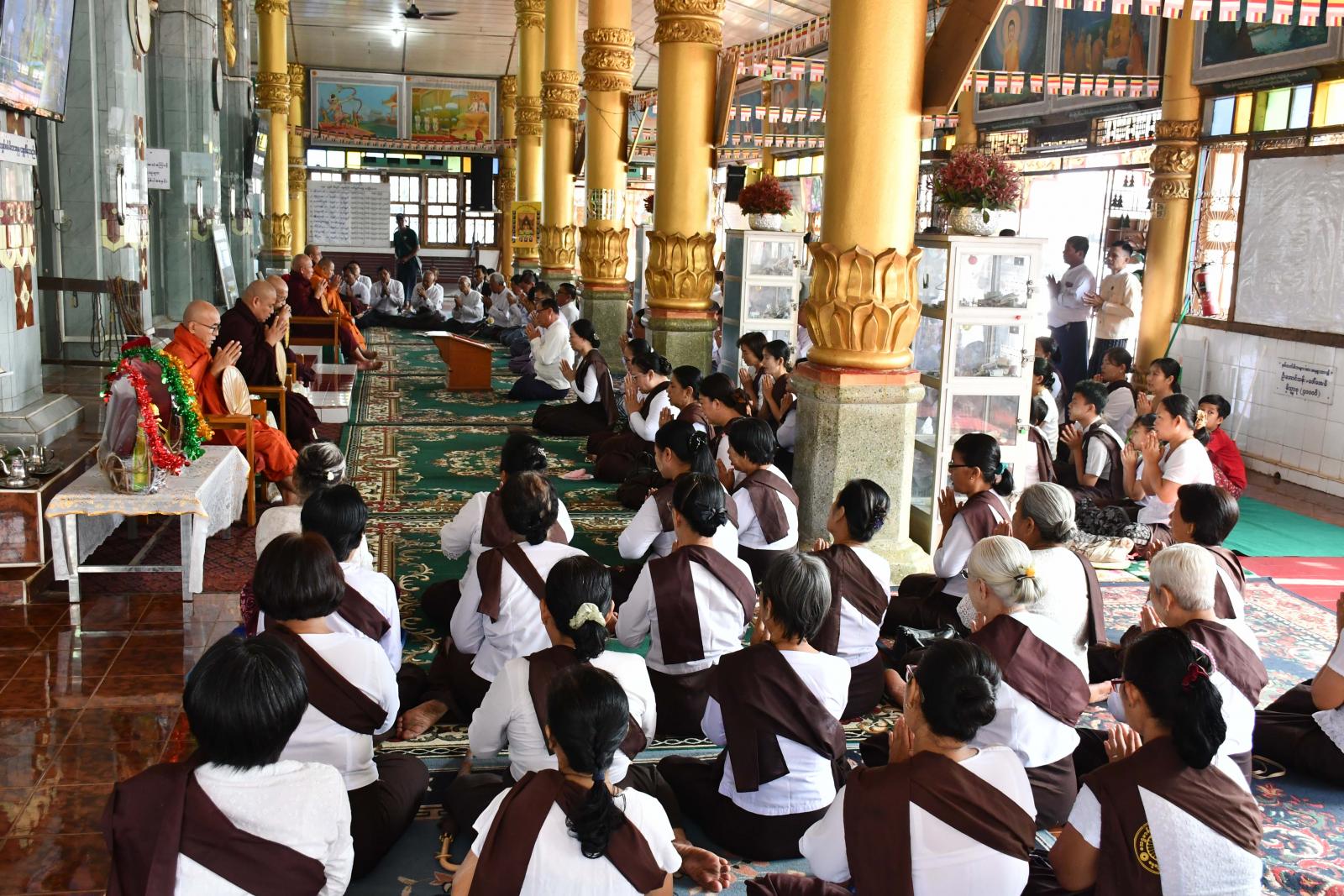 ဦးစွာ ပဋ္ဌာန်းသိမ်းအောင်ပွဲအခမ်းအနားကို နမောတဿသုံးကြိမ်ရွတ်ဆိုဘုရားကန်တော့၍ဖွင့်လှစ်ပြီး ပြည်နယ်ဝန်ကြီးချုပ်ဦးစောမြင့်ဦး၊ ပြည်နယ်တရားလွှတ်တော်တရားသူကြီးချုပ်ဦးညွန့်လင်း၊ ပြည်နယ်အစိုးရအဖွဲ့ဝင်များ၊ ပြည်နယ်အမျိုးသမီးရေးရာအဖွဲ့နှင့် ပြည်နယ်မိခင်နှင့်ကလေးစောင့်ရှောက်မှုကြီးကြပ်ရေးအဖွဲ့ နာယကနှင့်အဖွဲ့ဝင်များ၊ ဌာနဆိုင်ရာများ၊ ဝတ်ရွတ်အသင်းအဖွဲ့များနှင့်ဧည့်ပရိတ်သတ်အပေါင်းတို့က နိုင်ငံတော်ဩဝါဒစရိယ ကျောင်းထိုင်ဘုန်းကြီးသင်တန်းကျောင်း ကျောင်းအုပ်ဆရာတော် မဟာဂန္ထဝါစကပဏ္ဍိတ ဘဒ္ဒန္တဝိဇ္ဇာနန္ဒထံမှ ငါးပါးသီလခံယူဆောက်တည်ကြကာ သံဃာတော်အရှင်သူမြတ်များ ရွတ်ဖတ်သရဇ္ဈာယ်တော်မူသော မေတ္တာသုတ်ပရိတ်တရားတော်များကို နာယူကြည်ညိုကြသည်။
