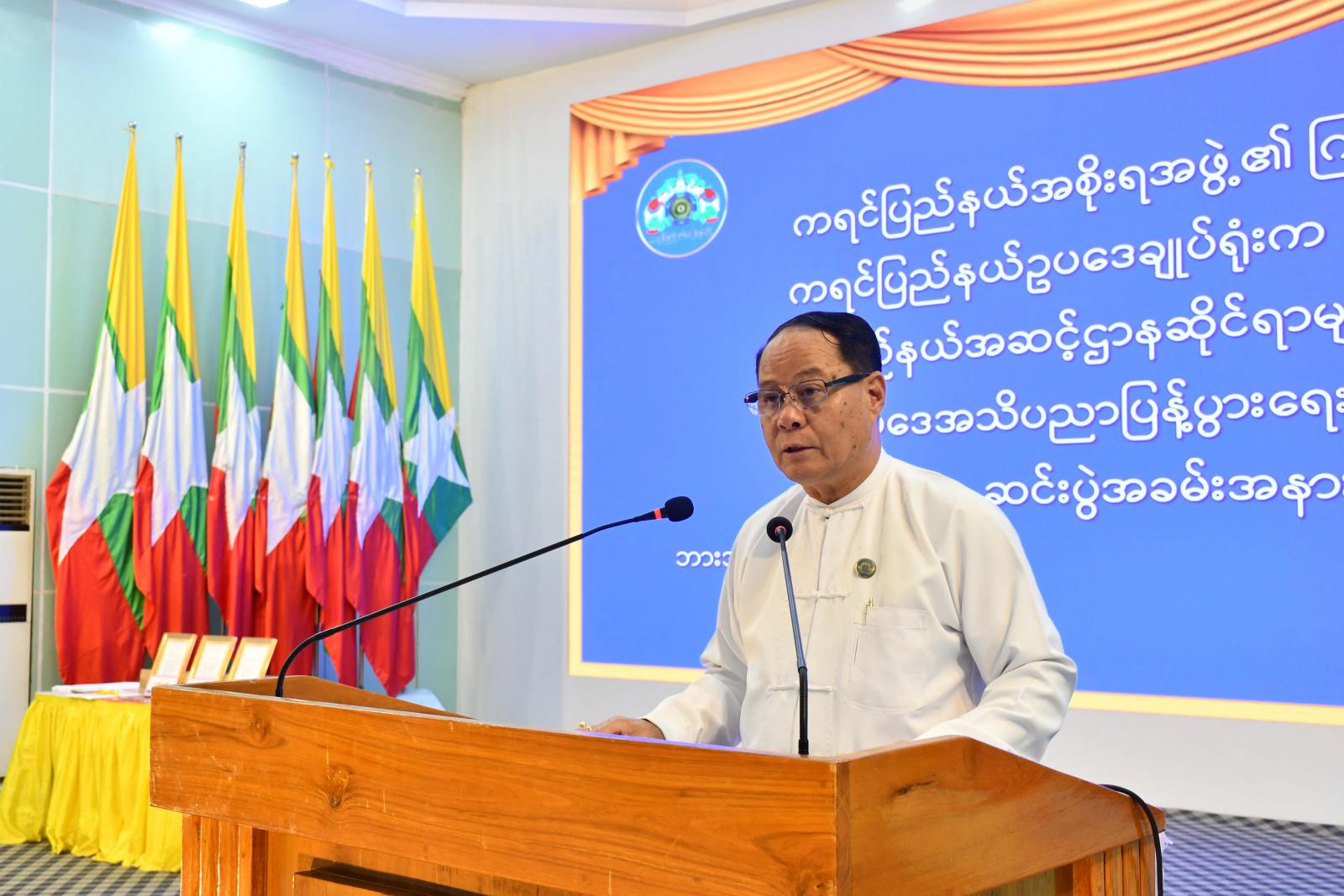 အဆိုပါသင်တန်းကို ပြည်နယ်အဆင့် အရာထမ်း ၁၂၂ ဦးတက်ရောက်ကြပြီး သင်တန်းဆင်းပွဲတွင် ကရင်ပြည်နယ်ဝန်ကြီးချုပ်ဦးစောမြင့်ဦးက သင်တန်းသား၊သင်တန်းသူများအနေဖြင့် တည်ဆဲဥပဒေများ၊ ထုတ်ပြန်ထားသည့်အမိန့်၊ ညွှန်ကြားချက်များနှင့် လုပ်ထုံးလုပ်နည်းများကိုဆက်လက်၍ ကျယ်ကျယ်ပြန့်ပြန့်လေ့လာကြရန်မှာကြားလိုကြောင်း၊ အထက်ကပေးအပ်သောတာဝန်များကို ဥပဒေနှင့်အညီကျေပွန်အောင်ထမ်းဆောင်ရန်နှင့်မိမိတို့လက် အောက်ဝန်ထမ်းများကိုစီမံခန့်ခွဲခြင်း၊ ဦးဆောင်ဦးရွက်ပြုခြင်း၊ ပူးပေါင်းဆောင်ရွက်ခြင်းတို့တွင်လည်း သက်ဆိုင်ရာဥပဒေများနှင့်အညီလိုက်နာဆောင်ရွက်ခြင်းဖြင့် နိုင်ငံတော်ကချမှတ်ထားသော ရည်မှန်းချက်များကိုအောင်မြင်စွာ အကောင်အထည် ဖော်ဆောင်ရွက်သွားနိုင်မည်ဟု ယုံကြည်ပါကြောင်း ပြောကြားသည်။