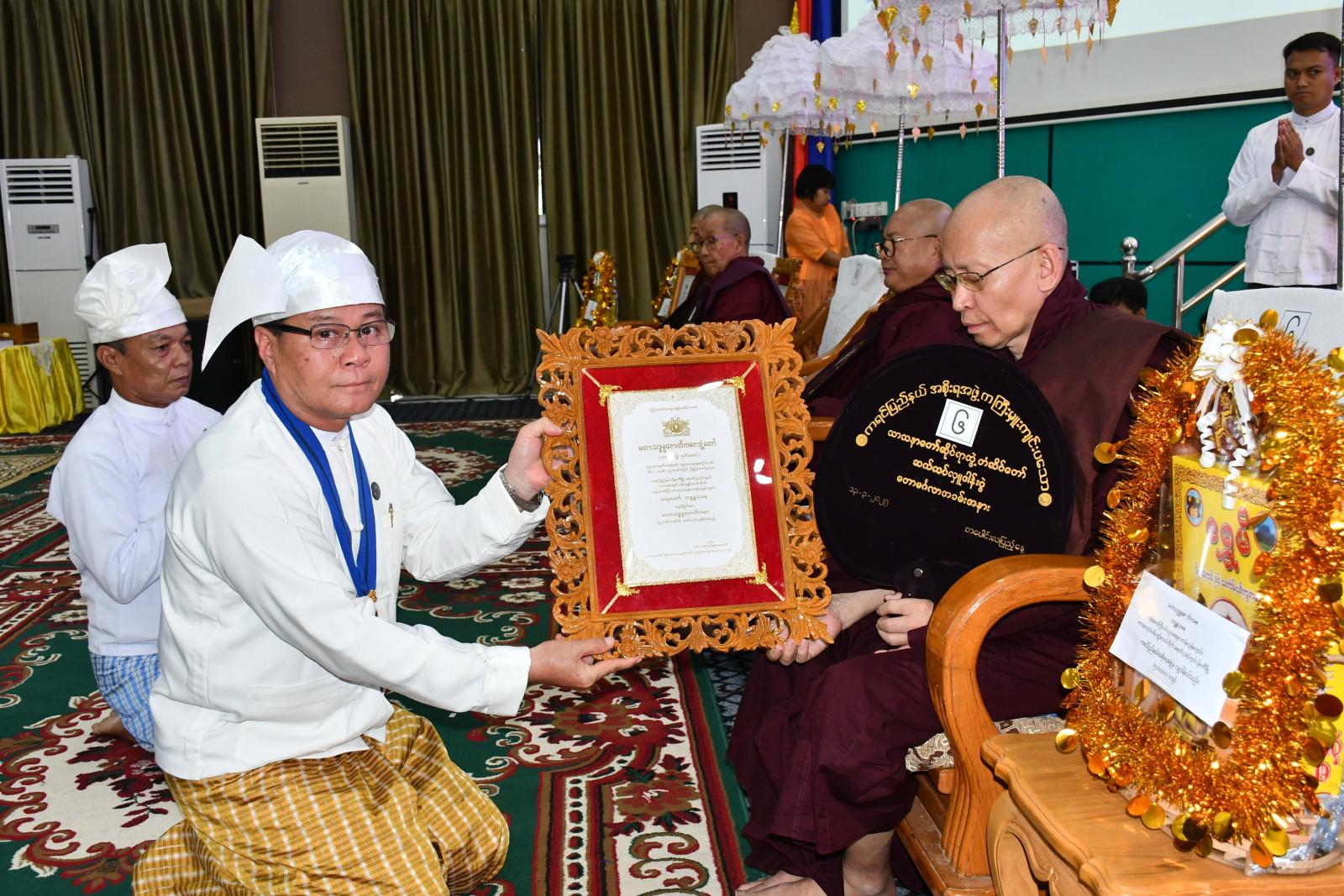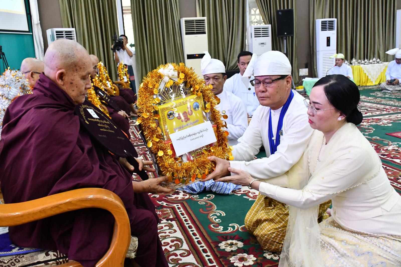 ယင်းနောက် ပြည်နယ်ဝန်ကြီးချုပ်၊ ပြည်နယ်တရားလွှတ်တော်တရားသူကြီးချုပ်၊ ပြည်နယ်အစိုးရအဖွဲ့ဝင်များ ပြည်နယ်အမျိုးသမီးရေးရာအဖွဲ့နှင့် ပြည်နယ်မိခင်နှင့်ကလေးစောင့်ရှောက်မှုကြီးကြပ်ရေးအဖွဲ့နာယကတို့က ကြွရောက်ချီးမြှင့်တော်မူသောထေရ်ကြီးဝါကြီးဆရာတော်ကြီးများကို လှူဖွယ်ဝတ္ထုပစ္စည်းများနှင့် နဝကမ္မအလှူတော်ငွေများဆက်ကပ်လှူဒါန်းကြပြီး သာသနာတော်ဘွဲ့တံဆိပ်တော်ရဆရာတော်ကြီး(၄)ပါး၊ သီလရှင်ဆရာကြီး(၂)ပါးနှင့် လူပုဂ္ဂိုလ်တစ်ဦးတို့အား ဘွဲ့တံဆိပ်အဆောင်အယောင်နှင့်လှူဖွယ်ဝတ္ထုပစ္စည်းများ ဆက်ကပ်လှူဒါန်းခဲ့ကြသည်။