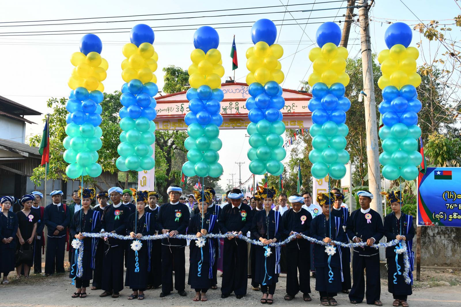 (၇၆)နှစ်မြောက်ပအိုဝ်းအမျိုးသားနေ့အခမ်းအနားကို ယနေ့ နံနက် ၇ နာရီက ဘားအံမြို့နယ်၊ မြိုင်ကလေးရွာကြီး၊ ပအိုဝ်းအမျိုးသားကွင်း၌ကျင်းပရာ ပြည်နယ်ဝန်ကြီးချုပ်ဦးစောမြင့်ဦး၊ ပြည်နယ်တရားလွှတ်တော်တရားသူကြီးချုပ်၊ ပြည်နယ်အစိုးရအဖွဲ့ဝင်ဝန်ကြီးများနှင့် ပအိုဝ်းစာပေနှင့်ယဉ်ကျေးမှုအသင်းမှတာဝန်ရှိသူများက (၇၆)နှစ်မြောက်ပအိုဝ်း အမျိုးသားနေ့အခမ်းအနားကို ဖဲကြိုးဖြတ်ဖွင့်လှစ်ပေးကြသည်။