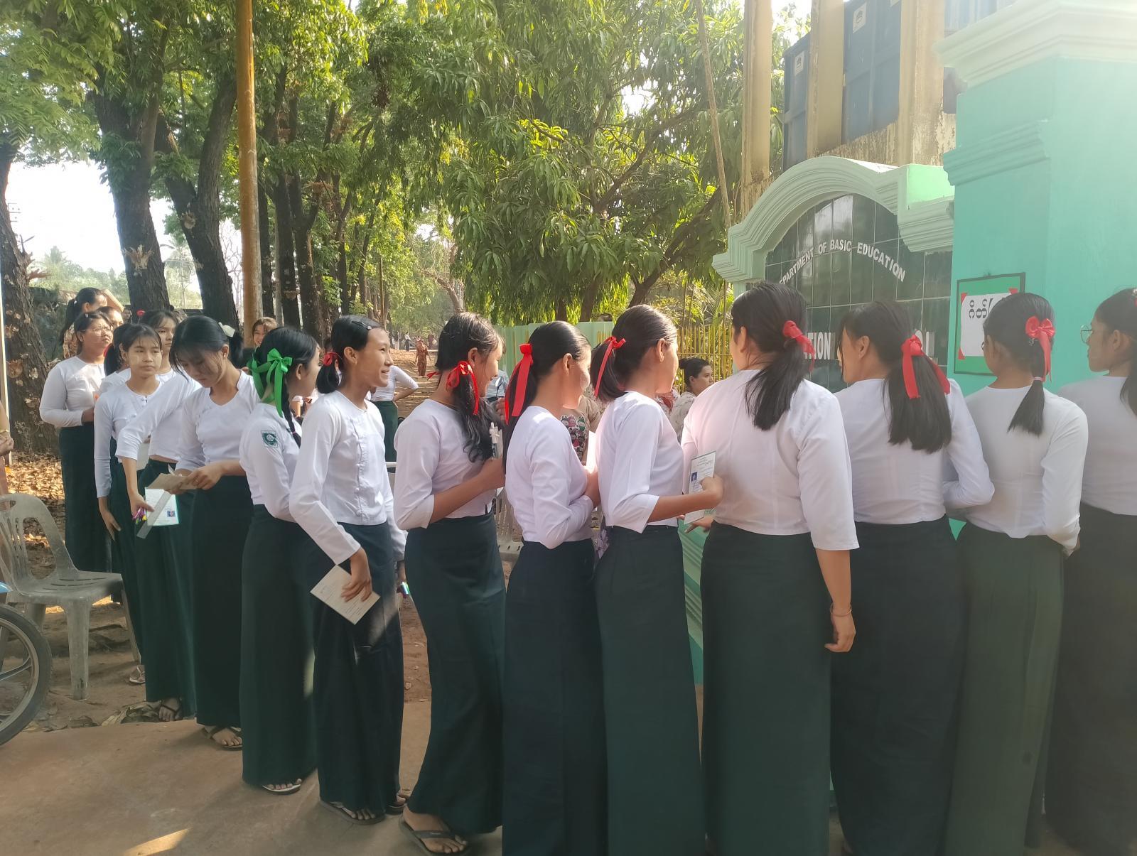 မွန်ပြည်နယ် ကျိုက်မရော မြို့နယ် ၌ ၂၀၂၄-၂၀၂၅ ပညာသင်နှစ် တက္ကသိုလ်ဝင်စာမေးပွဲကို ပထမနေ့အဖြစ် မတ် ၁၇ ရက် နံနက် ၉ နာရီက မြန်မာစာဘာသာရပ်ကို ဖြေဆိုလျက်ရှိသည်။