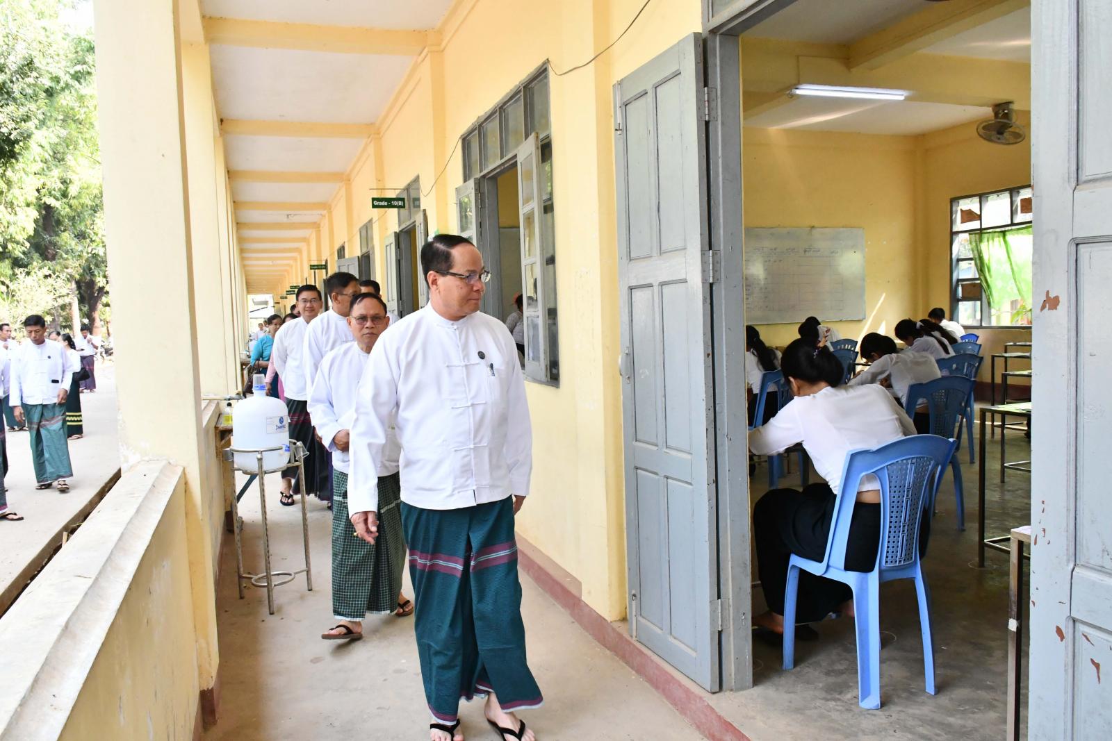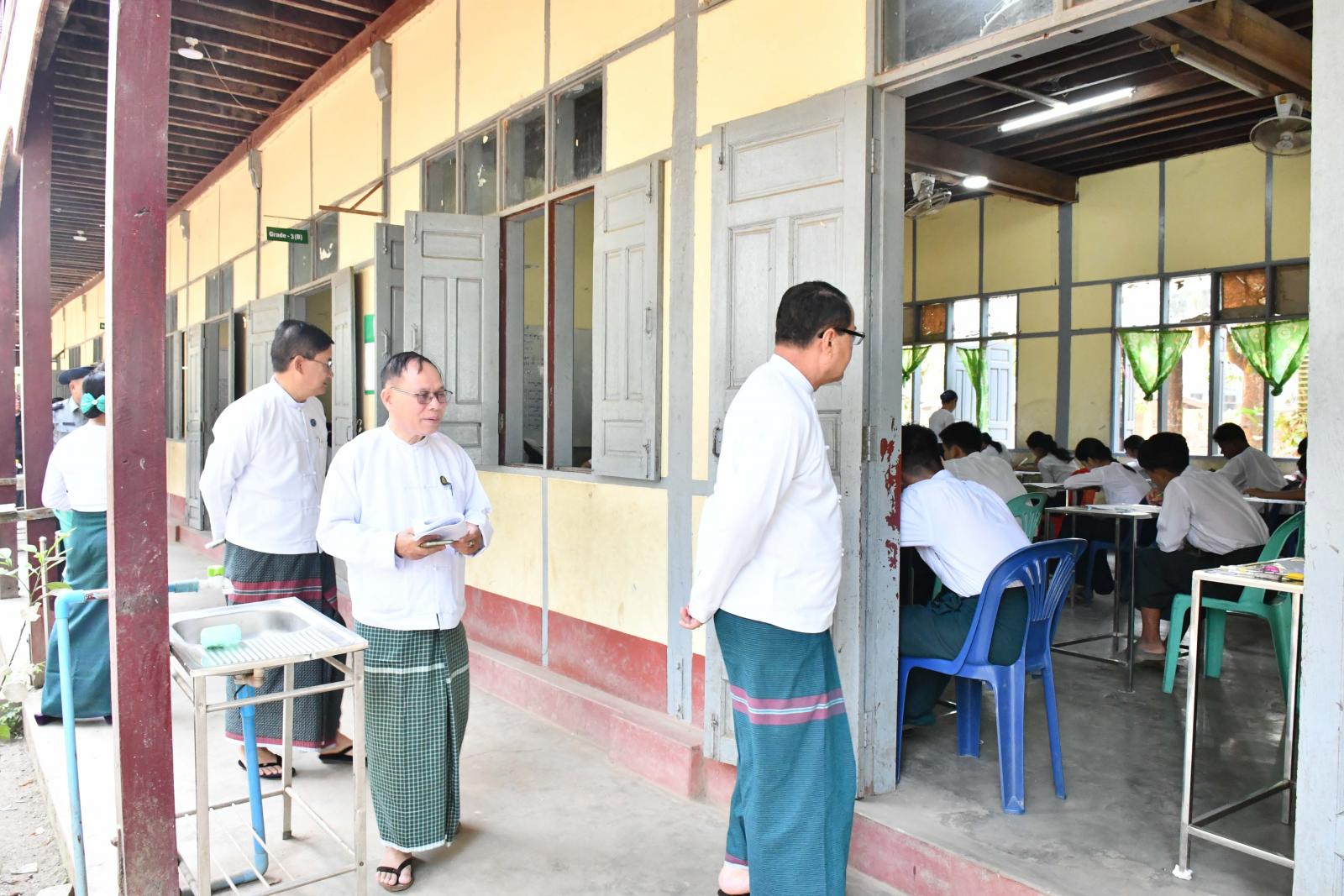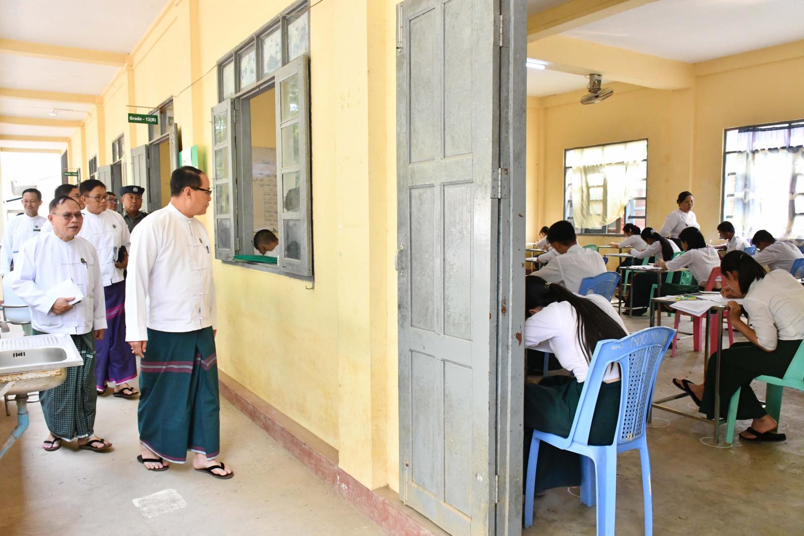 ထိုသို့ ကျောင်းသား၊ ကျောင်းသူများ အေးချမ်းပျော်ရွှင်စွာ တက္ကသိုလ်ဝင်စာမေးပွဲဖြေဆိုနေမှုများကို ကရင်ပြည်နယ်ဝန်ကြီးချုပ်ဦးစောမြင့်ဦး၊ ပြည်နယ်တရားလွှတ်တော်တရားသူကြီးချုပ်ဦးညွန့်လင်း၊ ပြည်နယ်အစိုးရအဖွဲ့ဝင်များ၊ ဌာနဆိုင်ရာတာဝန်ရှိသူများက သွားရောက်ကြည့်ရှုအားပေးကြရာ ပြည်နယ်ဝန်ကြီးချုပ်နှင့်အဖွဲ့သည် ဘားအံမြို့၊ အမှတ်(၂)အခြေခံပညာအထက်တန်းကျောင်း၌ ကျောင်းသား၊ ကျောင်းသူ ၄၇၆ ဦး မြန်မာစာဘာသာ ဖြေဆိုနေမှုနှင့် သက်ဆိုင်ရာတာဝန်ရှိသူများက စာမေးပွဲဆိုင်ရာလုပ်ငန်းများဆောင်ရွက်နေမှုတို့ကို လှည့်လည်ကြည့်ရှုပြီး ကြီးကြပ်ရေးမှူး၊ လက်ထောက်ကြီးကြပ်ရေးမှူးများနှင့်တာဝန်ရှိသူများအား တက္ကသိုလ်ဝင်စာမေးပွဲကို ကျောင်းသား၊ ကျောင်းသူများ စိတ်အေးချမ်းသာစွာဖြင့် ဖြေဆိုနိုင်ရန်အတွက် စာမေးပွဲ စည်းမျဉ်း၊ စည်းကမ်းများ၊ ညွှန်ကြားချက်များနှင့်အညီ လိုက်နာဆောင်ရွက်ကြရန် ဆွေးနွေးမှာကြားခဲ့သည်။