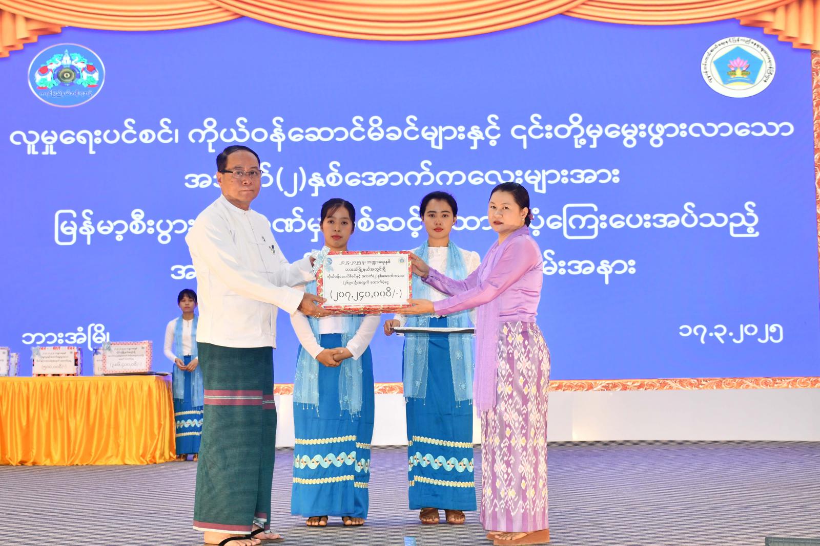 ယနေ့အခမ်းအနားတွင် စုစုပေါင်းငွေကျပ် (၄၄၈ ဒဿမ ၄၄၅)သန်းကို ထောက်ပံ့ပေးအပ်ခဲ့ပြီး ပြည်နယ်ဝန်ကြီးချုပ်၊ ပြည်နယ်အမျိုးသမီးရေးရာအဖွဲ့နှင့် ပြည်နယ်မိခင်နှင့်ကလေးစောင့်ရှောက်မှု ကြီးကြပ်ရေးအဖွဲ့ နာယက၊ ပြည်နယ်တရားလွှတ်တော်တရားသူကြီးချုပ်၊ ပြည်နယ်အစိုးရအဖွဲ့ဝင် များက အခမ်းအနားသို့တက်ရောက်လာသော အကျိုးခံစားခွင့်ရှိသူများအား နေ့လယ်စာများ ဝေငှ ပေးခဲ့ကြသည်။