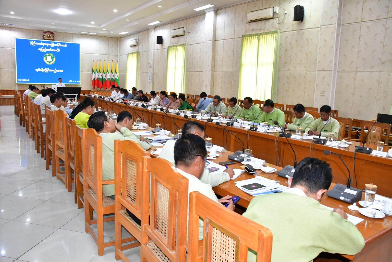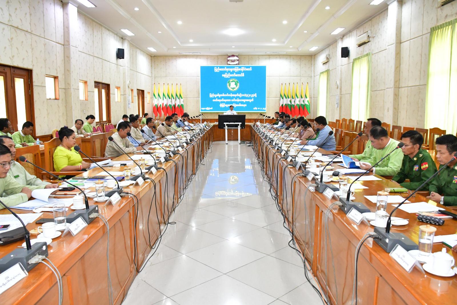 ထို့နောက် ဌာနဆိုင်ရာတာဝန်ရှိသူများက သက်ဆိုင်ရာကဏ္ဍများအလိုက်လုပ်ငန်းများ အကောင်အထည်ဖော်ဆောင်ရွက်နေမှုအခြေအနေများကို အသီးသီးရှင်းလင်းတင်ပြကြသည်။