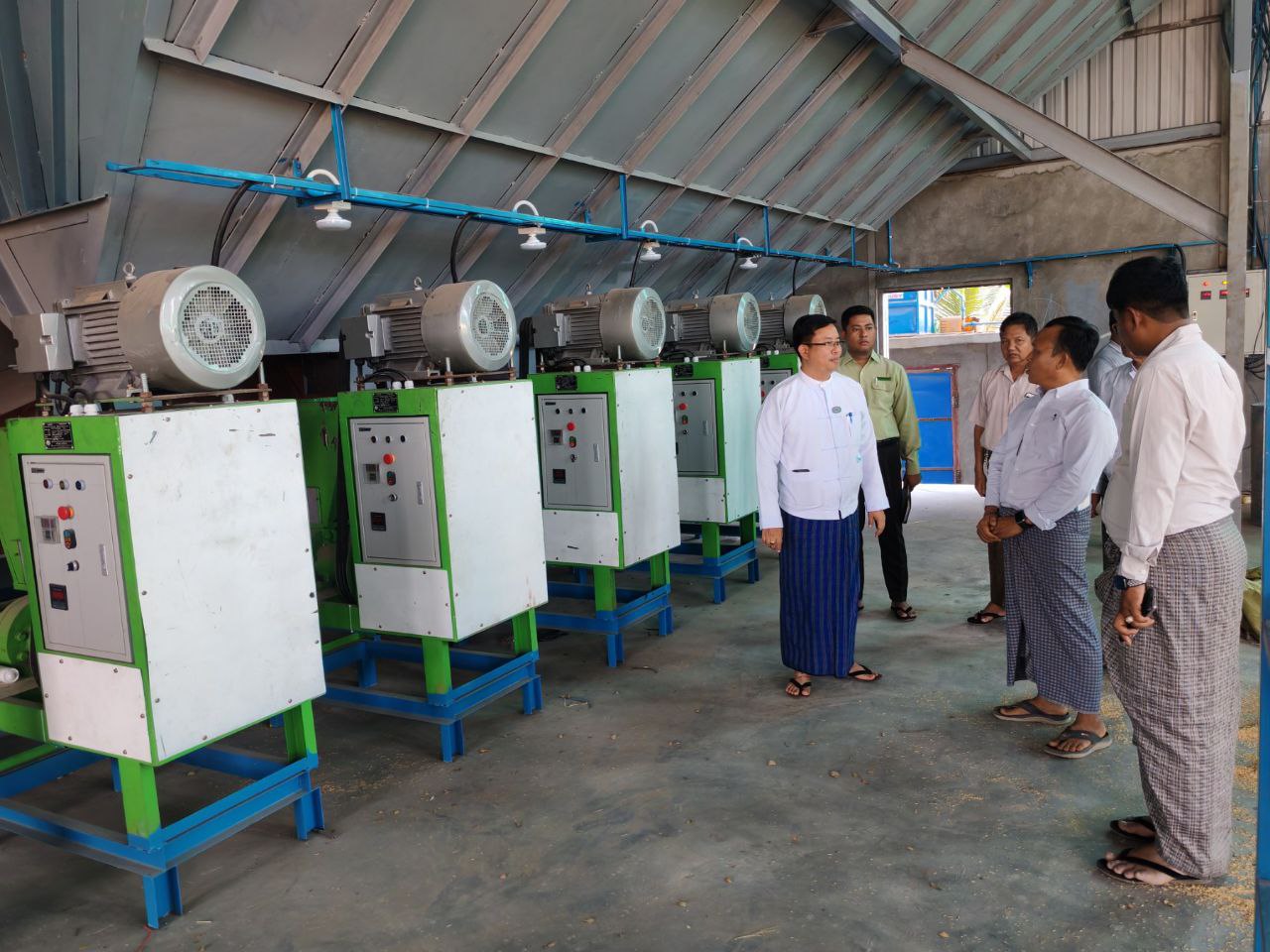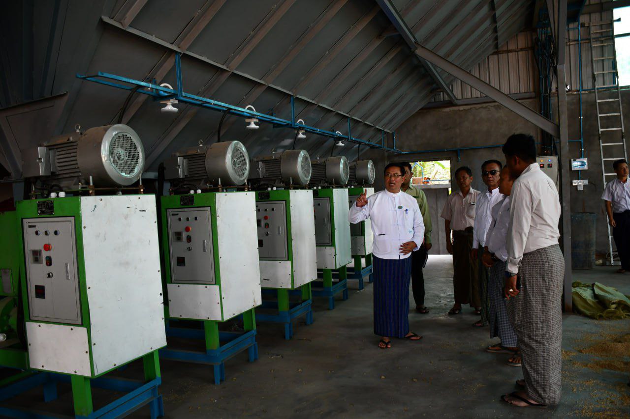 ထို့နောက် နေပြည်တော်ကောင်စီဝင်နှင့်အဖွဲ့သည် လယ်ဝေးမြို့နယ်၊ အေလာမြို့ရှိ ဦးအေးထွန်း၏ ပြည်လုံးချမ်းသာဆီစက်သို့သွားရောက်၍ လုပ်ငန်းလည်ပတ်နေမှုနှင့် တိုးချဲ့ဆောင်ရွက်မည့်အခြေအနေများအားလည်းကောင်း၊ ရုံးပင်ကျေးရွာအုပ်စု၊ ကြံခင်းစုရွာမှ ဦးအောင်ထွန်း၏ တစ်ရက်လျှင် ဆန်တန်ချိန် ၄၀ တန်ကျနှင့် ၃၀ တန်ကျ ထုတ်လုပ်နိုင်သည့် ငြိမ်းချမ်းသာအဆင့်မြင့်ဆန်စက်နှင့် ဆန်သန့်စင်စက်ရုံသို့လည်းကောင်း သွားရောက်ကြည့်ရှုအားပေးရာ လုပ်ငန်းရှင်မှ အဆင့်မြင့်ဆန်စက်နှင့် ဆန်သန့်စင်စက်ရုံမှ ထွက်ရှိသည့် စွန့်ပစ်ပစ္စည်းစပါးခွံဖြင့် လောင်စာတောင့် ထုတ်လုပ်မည့်စက်ရုံ တည်ဆောက်နေမှု၊ စပါးခွံမှ လျှပ်စစ်ဓာတ်အား ထုတ်လုပ်နိုင်သည့် (Gasifier)စက်တည်ဆောက်နေမှု အခြေအနေတို့အား ရှင်းလင်းတင်ပြခဲ့သည်။ ဆက်လက်၍ နေပြည်တော်ကောင်စီဝင်က ကြိတ်ခွဲထုတ်လုပ်သည့် ဆန်များ အရည်အသွေးကောင်းမွန်ပြီး ဈေးကွက်ရရှိရေး၊ စမ်းသပ်ထုတ်လုပ်မည့် လုပ်ငန်းနှင့်စပ်လျဉ်း၍ လိုအပ်သည့် အကူအညီများရှိပါက သက်ဆိုင်ရာဌာနများနှင့် ပေါင်းစပ်ဆောင်ရွက်ပေးသွားမည်ဖြစ်ကြောင်းဖြင့် ဆွေးနွေးမှာကြားခဲ့ကြောင်း သိရသည်။