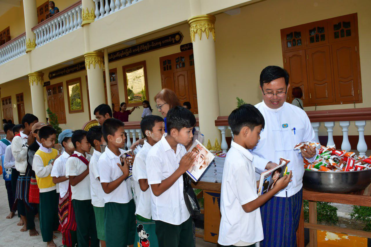 ထို့နောက် အေလာသရက်တော ပရိယတ္တိစာသင်တိုက် ဆရာတော် မြို့နယ်သံဃနာယကအဖွဲ့ဥက္ကဋ္ဌ ဘဒ္ဒန္တကုမာရအား ဖူးမြော်ကြည်ညို၍ အလှူငွေ၊ ဆန်၊ ဆီ၊ ဆေး၊ ဆား လှူဖွယ်ဝတ္ထုပစ္စည်းများ ဆက်ကပ်လှူဒါန်းခဲ့ပြီး ကလေးငယ်များအား မုန့်၊ အချိုရည်နှင့် စာရေးကိရိယာများ ပေးအပ်လှူဒါန်းခဲ့သည်။