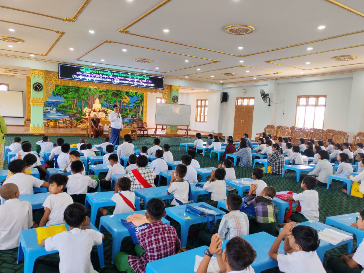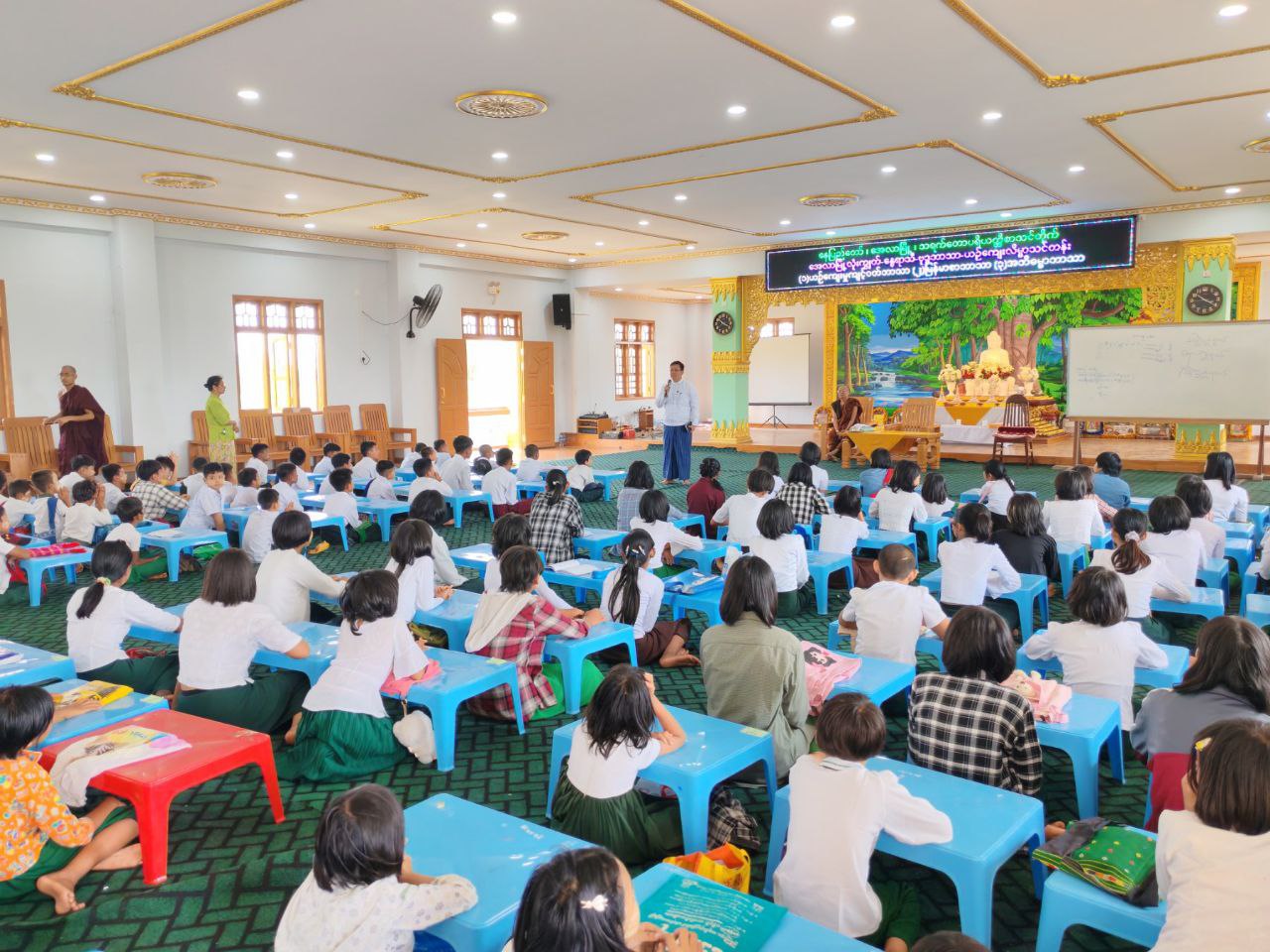 နေပြည်တော်ကောင်စီဝင် ဦးဇေယျာလင်းသည် ယမန်နေ့နံနက်ပိုင်းက နေပြည်တော်စားသုံးသူရေးရာဦးစီးဌာနမှ ဒုတိယညွှန်ကြားရေးမှူး ဦးတင်ဦး၊ မြို့နယ်အဆင့်ဌာနဆိုင်ရာတာဝန်ရှိသူများနှင့်အတူ လယ်ဝေးမြို့နယ်၊ အေလာသရက်တောစာသင်တိုက်၌ မတ်လ ၉ ရက်နေ့မှ ဧပြီ ၈ ရက်နေ့အထိ ဖွင့်လှစ်သင်ကြားလျက်ရှိသော နွေရာသီယဉ်ကျေးလိမ္မာသင်တန်းသို့ တက်ရောက်လျက်ရှိသည့် ကလေးငယ် ၄၀၀ ဦးခန့် သင်ကြားနေမှုအခြေအနေများအား ကြည့်ရှုအားပေးခဲ့သည်။