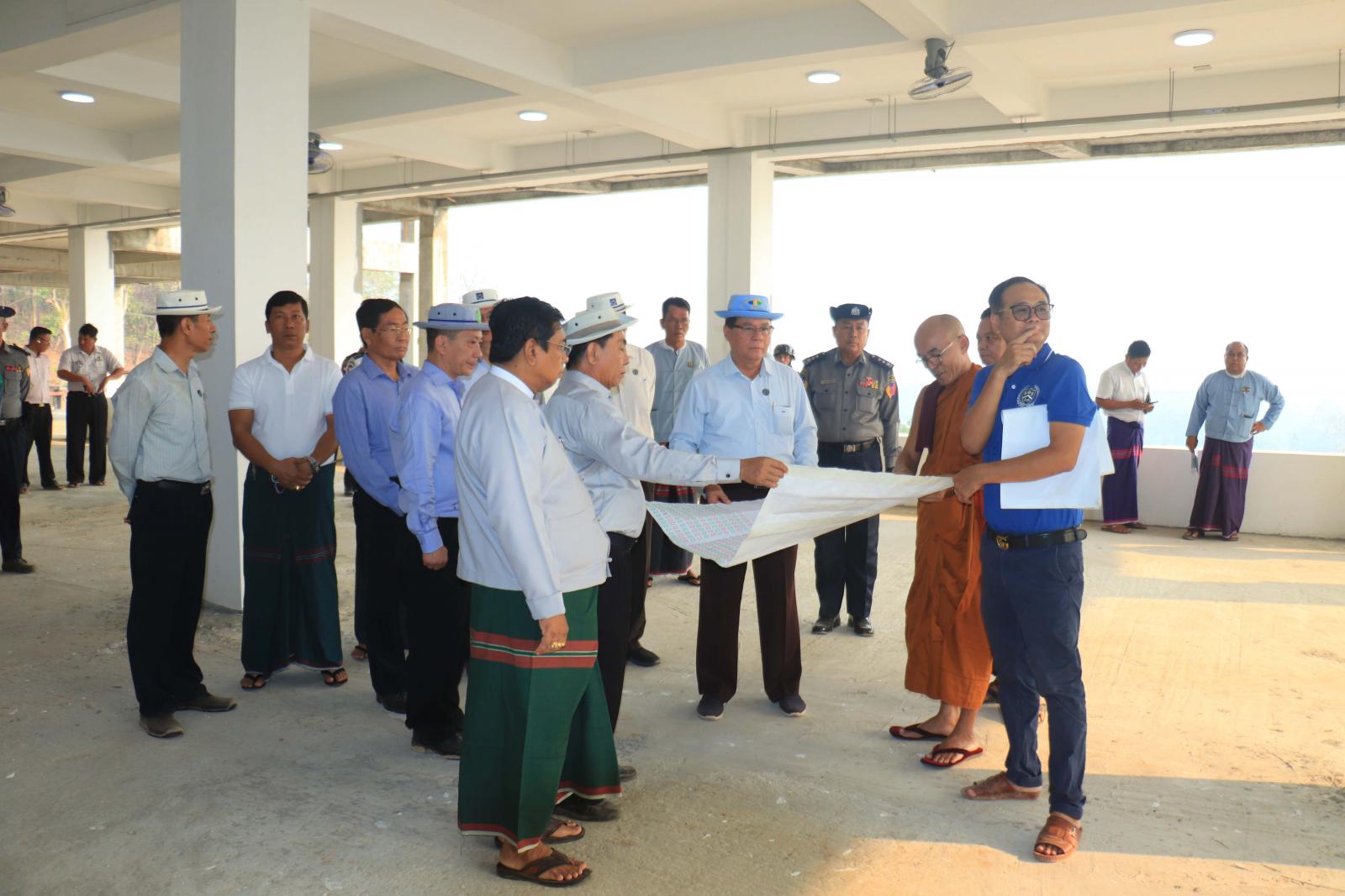 ထို့နောက် ပြည်နယ်ဝန်ကြီးချုပ်နှင့်တာဝန်ရှိသူများသည် တည်ဆောက်ဆဲဖြစ်သော သာသနာ့ဝေစည်ဓမ္မဗိမာန်တော်ကြီး ၆၀ ရာခိုင်နှုန်းခန့် ပြီးစီးမှုအခြေအနေများကို လိုက်လံကြည့်ရှုစစ်ဆေးပြီး ရေ၊ မီး၊ မိလ္လာ ပြည့်စုံလုံလောက်မှုရှိစေရေး၊ အစိုးရဓမ္မာစရိယ စာမေးပွဲနှင့် ပါဋ္ဌိပထမပြန်စာမေးပွဲ အောင်မြင်စွာကျင်းပနိုင်ရေး တာဝန်ရှိသူများအား မှာကြားခဲ့သည်။