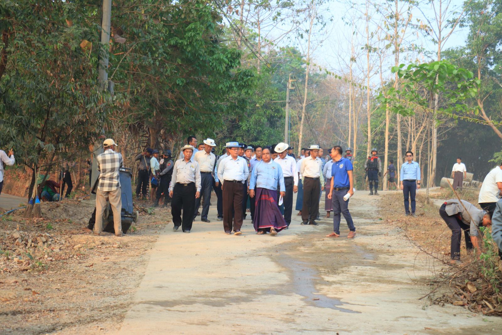 ဦးစွာ ပြည်နယ်ဝန်ကြီးချုပ်နှင့် တာဝန်ရှိသူများသည် သာသနာ့ဝေစည်ဓမ္မဗိမာန်တော်ကြီး ပရိဝုဏ်အတွင်း နယ်မြေခံတပ်မတော်သားများ၊ ရဲတပ်ဖွဲ့ဝင်များ၊ မီးသတ်တပ်ဖွဲ့ဝင်များ၊ ဌာနဆိုင်ရာများနှင့် ရပ်ကွက်နေပြည်သူများ ပူးပေါင်းပြီး ယာဉ်၊ ယန္တရားများအသုံးပြု၍ အမှိုက်သရိုက်များ ဖယ်ရှားရှင်းလင်းခြင်း၊ ခြုံနွယ်ပိတ်ပေါင်းများခုတ်ထွင် ရှင်းလင်းခြင်း၊ ရေစီးရေလာကောင်းမွန်စေရေးဆောင်ရွက်ခြင်း အစရှိသည့် စုပေါင်းသန့်ရှင်းရေးလုပ်ငန်းများဆောင် ရွက်မှုကို လိုက်လံကြည့်ရှုအားပေးပြီး တာဝန်ရှိသူများအား လိုအပ်သည်များမှာကြားသည်။