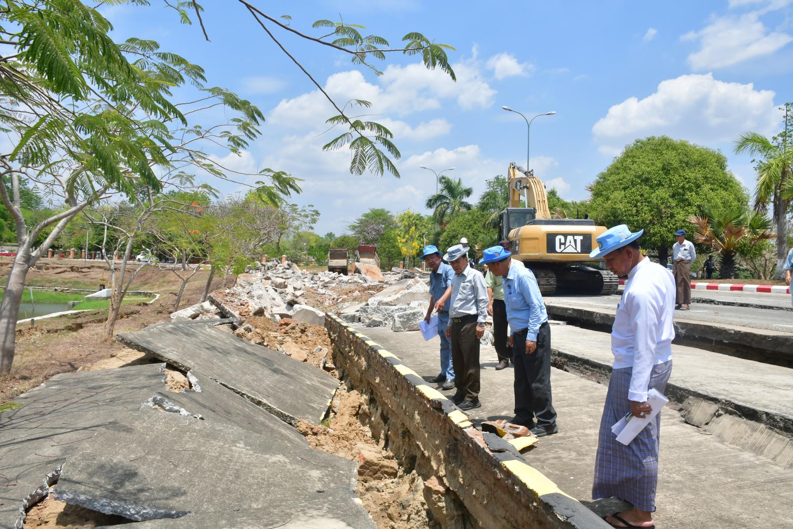 ဆက်လက်၍ မွန်းလွဲပိုင်းတွင် နေပြည်တော်ကောင်စီဥက္ကဋ္ဌနှင့် တာဝန်ရှိသူများသည် ငလျင်ဘေးကြောင့် ထိခိုက်ပျက်စီးခဲ့သည့် ရာဇသင်္ဂဟလမ်းနှင့် တော်ဝင်ရတနာလမ်းများ ပြန်လည်ပြုပြင်ခြင်းလုပ်ငန်းဆောင်ရွက်နေမှု အခြေအနေများကို ကြည့်ရှုစစ်ဆေးပြီး လိုအပ်သည်များကို ပေါင်းစပ်ညှိနှိုင်းဆောင်ရွက်ပေးခဲ့သည်။