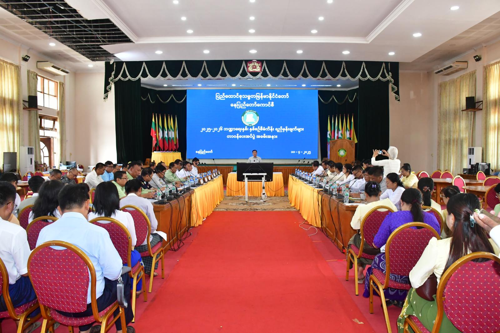 ပြည်ထောင်စုနယ်မြေ၊ နေပြည်တော်၊ နေပြည်တော်ကောင်စီ ဇမ္ဗူသီရိခန်းမ၌ ကျင်းပပြုလုပ်သည့် ၂၀၂၅-၂၀၂၆ ဘဏ္ဍာရေးနှစ်၊ နှစ်စဉ်စီမံကိန်းရည်မှန်းချက်များ တာဝန်ပေးအပ်ပွဲအခမ်းအနားကို ယမန်နေ့နံနက်ပိုင်းကကျင်းပရာ နေပြည်တော်ကောင်စီဥက္ကဋ္ဌ ဦးသန်းထွန်းဦး၊ နေပြည်တော်ကောင်စီဝင်များနှင့် ဌာနဆိုင်ရာတာဝန်ရှိသူများ တက်ရောက်ခဲ့ကြသည်။