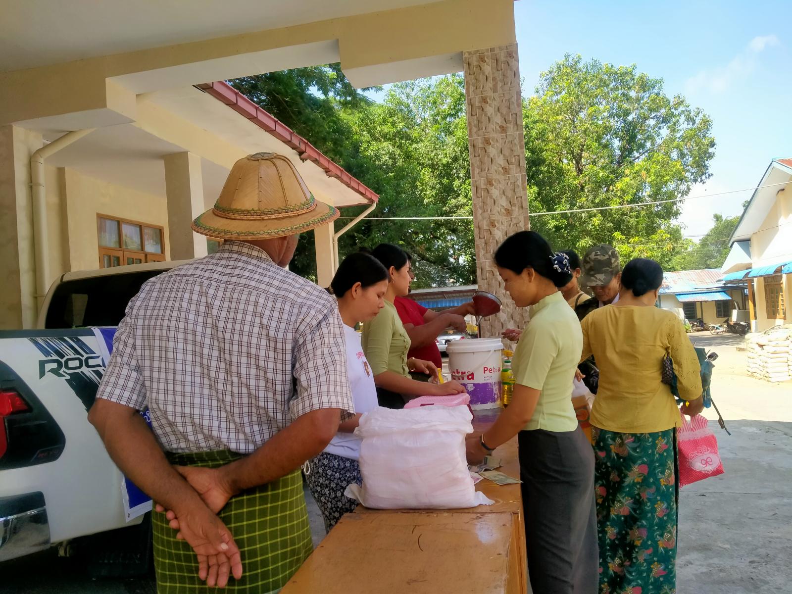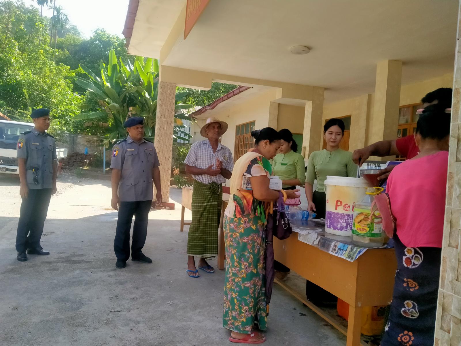 ထိုသို့ဆောင်ရွက်ရာတွင် မြို့နယ်စီမံအုပ်ချုပ်ရေးအဖွဲ့ဝင်များ တာဝန်ရှိသူများ ကျန်းမာရေးဝန်ထမ်းများမှ ကျန်းမာရေးစစ်ဆေးကုသခြင်းနှင့် လိုအပ်သည့်ဆေးဝါးများ အခမဲ့ပေးအပ်ခြင်း၊ မြို့နယ်စည်ပင်သာယာရေးအဖွဲ့နှင့် တာဝန်ရှိသူများတို့ပူးပေါင်းကာ သက်သာသောဈေးနှုန်းဖြင့် ပဲ၊ အာလူး၊ ဆီ စသည့် အခြေခံစားသောက်ကုန်များကို ရောင်းချပေးပြီး လိုအပ်သည်တို့ကို ပံ့ပိုးကူညီပေးခဲ့ကြသည်။
