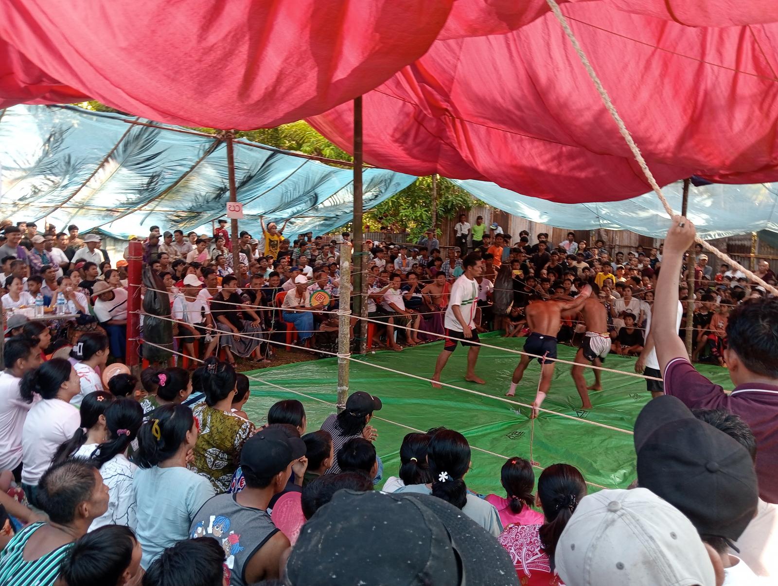 မွန်ပြည်နယ်၊ (ဘီလူးကျွန်း) ချောင်းဆုံမြို့နယ်၌ ဧည့်သည်ခေါ်ဘုရားပွဲတော်များကို ရှေးနှစ်ပေါင်း များစွာကတည်းက နှစ်စဉ်ကျင်းပခဲ့ရာ ဧပြီလ(၂၅)ရက်နေ့က ကမာကေးကျေးရွာ ဆံတော်ရှင် ကျိုက်မူဟွတ် ဘုရားပွဲတော်တွင် မြန်မာ့ရိုးရာ လက်ဝှေ့စိန်ခေါ်ပွဲကို ရိုးရာဓလေ့ ယဉ်ကျေးမှုနှင့် အညီ ကျင်းပခဲ့ရာ အေးချမ်းစွာလာရောက်လည်ပတ် ကြည့်ရှုသူများဖြင့် စည်ကားခဲ့သည်။