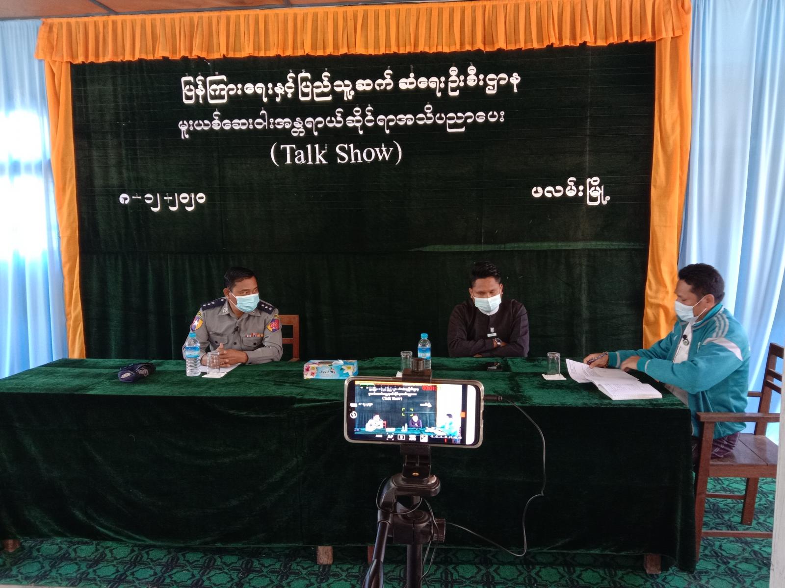 မူးယစ်ဆေးဝါး အန္တရာယ်ဆိုင်ရာ အသိပညာပေးဆွေးနွေးပွဲ( Talk Show )ကို ယမန်နေ့ မွန်းလွဲ ၁ နာရီက ပြန်ကြားရေး နှင့်ပြည်သူ့ဆက်ဆံရေးဦးစီးဌာန၊ ဖလမ်းခရိုင်ရုံး Community Centre ခန်းမ၌ ပြုလုပ်သည်။