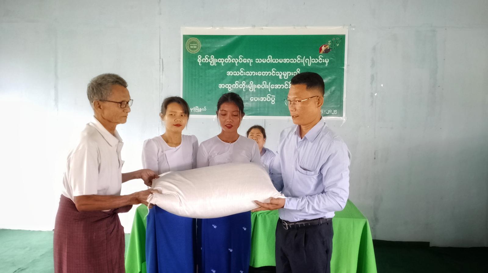 ထို့နောက် ပြည်နယ်ညွှန်ကြားရေးမှူးနှင့် တာဝန်ရှိသူများက သမဝါယမအသင်း (၇) သင်း တောင်သူ(၁၀၇)ဦး၏ စိုက်ဧက(၄၄၈)ဧကအတွက် တစ်ဧကလျင် ကျပ်(၅)သိန်းနှုန်း စုစုပေါင်းကျပ် (၂၂၄) သန်း ညီမျှသည့် သွင်းအားစုမျိုးစပါးလိုအပ်ချက်များကို ပေးအပ်ခဲ့ကြောင်း သိရသည်။
