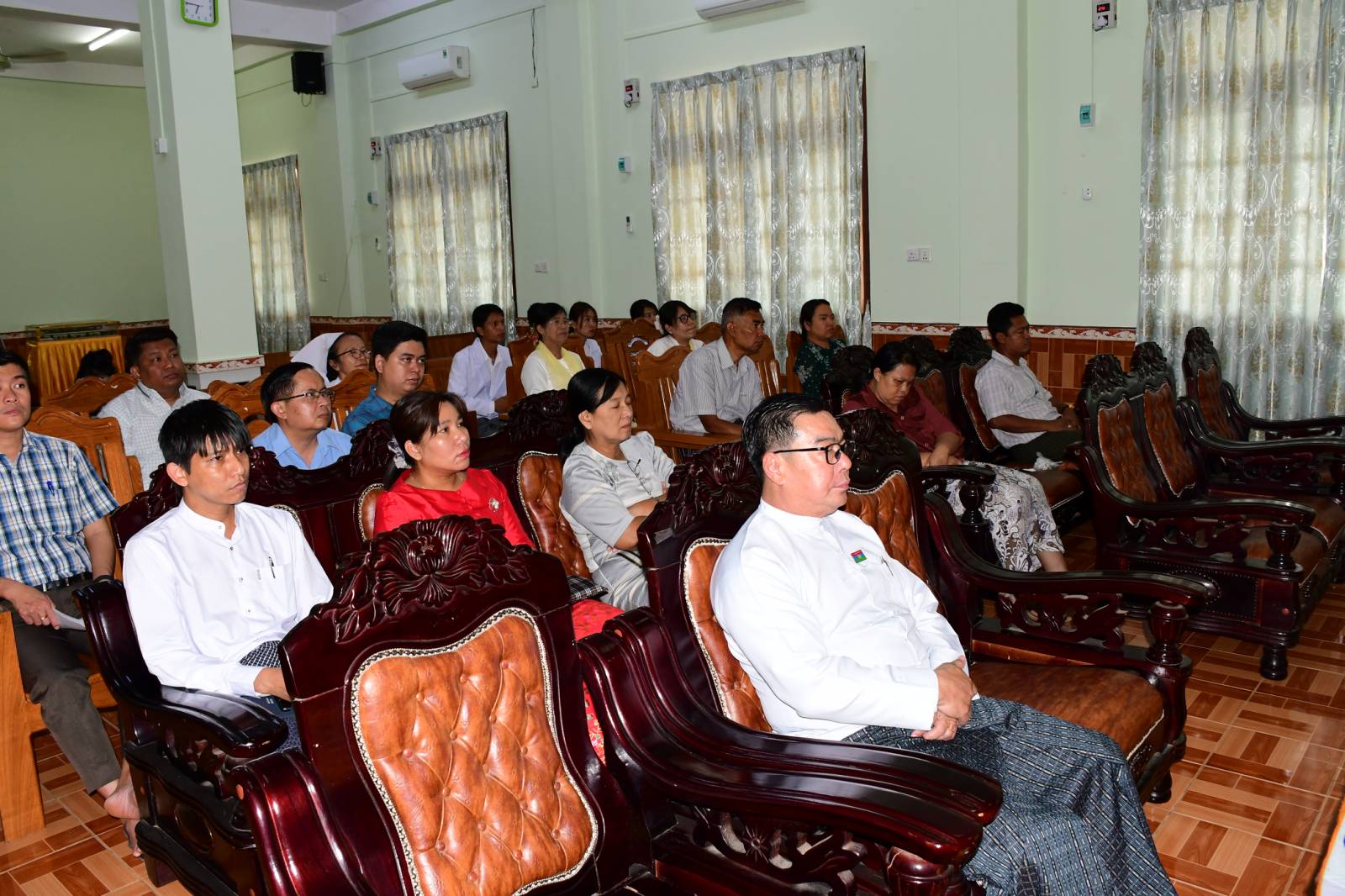 ပြည်နယ်ပြည်သူ့ကျန်းမာရေး ဦးစီးဌာနမှူး ဒေါက်တာစည်သူက သင်းတန်းဖွင့်လှစ်ရခြင်း ရည်ရွယ်ချက်နှင့် ပတ်သက်၍ ရှင်းလင်းပြေားကြားပြီး စုပေါင်းမှတ်တမ်းတင် ဓါတ်ပုံရိုက်ကူးခဲ့ကြသည်။ အဆိုပါ သင်တန်းသို့ သင်တန်းသာ(၄)ဦး တက်ရောက်ပြီး သင်တန်းကာလမှာ (၈)လ ကြာမြှင့်မည်ဖြစ်ကြောင်း သိရသည်။