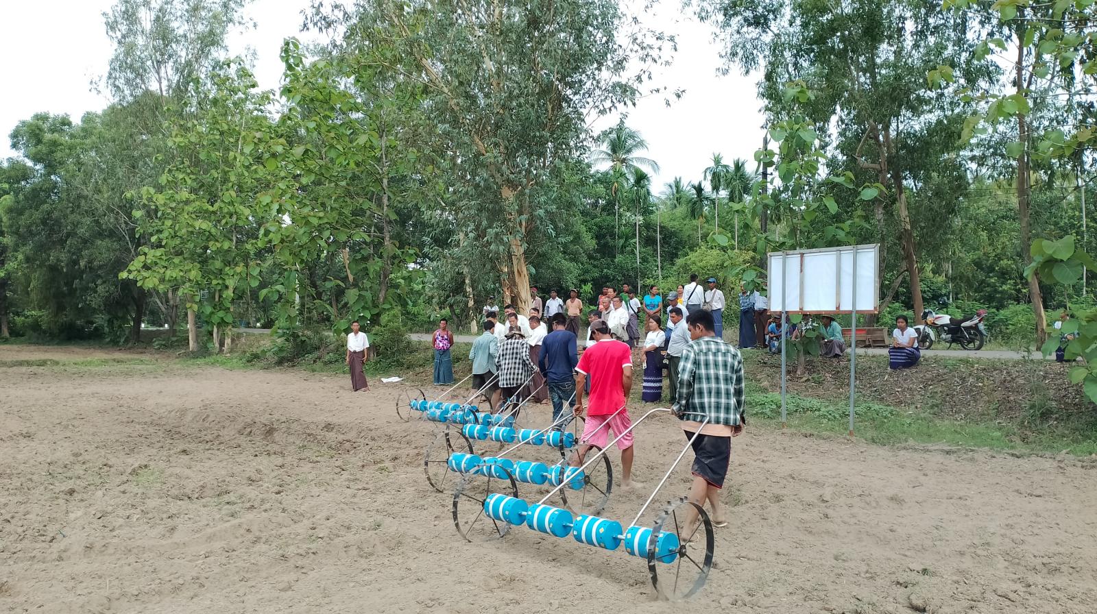 ကွင်းသရုပ်ပြပွဲသို့ ခရိုင်စိုက်ပျိုးထုတ်လုပ်မှု တိုးတက်မြင့်မားရေးအဖွဲ့ဝင် ဦးကျော်မြင့်၊ ခရိုင်ဌာနဆိုင်ရာတာဝန်ရှိသူများ၊ မြို့နယ်စီမံအုပ်ချုပ်ရေးအဖွဲ့ဥက္ကဋ္ဌ ဦးပြည်သိမ်းနှင့် အဖွဲ့ဝင်များက မိုးစပါးမျိုးစေ့ချကိရိယာ (Seeder) ဖြင့် လက်တွေ့စိုက်ပျိုးခြင်းကို ကြည့်ရှုအားပေးသည်။ ထို့နောက် မြို့နယ်စိုက်ပျိုးရေးဦးစီးဌာနမှ မြို့နယ်ဦးစီးမှူး ဦးငြိမ်းချမ်းကျော်က တောင်သူများအား မျိုးစေ့ချကိရိယာ (Seeder) ဖြင့် စိုက်ပျိုးခြင်းသည် ကြဲခင်းစနစ်တွင် အထွက်နှုန်းတိုးတက်စေရန်အတွက် တိုက်ရိုက်မျိုးစေ့ချကိရိယာဖြင့် စနစ်တကျဆောင်ရွက်ခြင်း၊ အတန်းလိုက်စနစ်ဖြစ်ခြင်း၊ အပင်ပေါက်ညီညာခြင်း၊ အပင်ပြုစုထိန်းသိမ်းရာတွင် လွယ်ကူစေခြင်း၊ ပိုးမွှားရောဂါကာကွယ်နှိမ်နင်းရာတွင် စနစ်တကျဆောင်ရွက်နိုင်ခြင်း၊ အပင်အာဟာရနှင့် လေဝင်လေထွက်စနစ် ကောင်းမွန်ခြင်းကြောင့် တစ်ဧကအထွက်နှုန်းတိုးတက်နိုင်ရန်အတွက် ဆောင်ရွက်ခြင်းဖြစ်ကြောင်း ရှင်းလင်းပြောကြားခဲ့သည်။