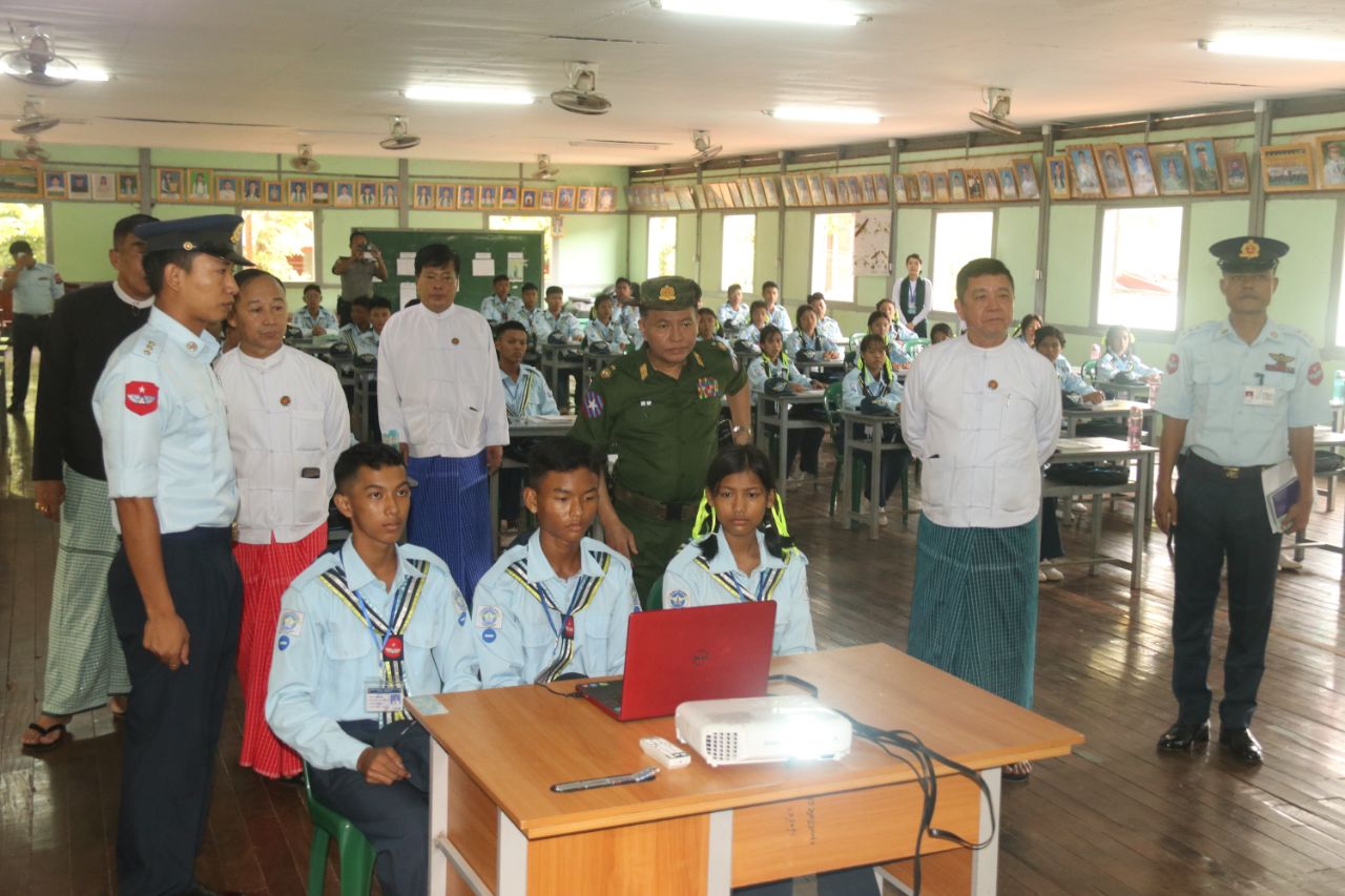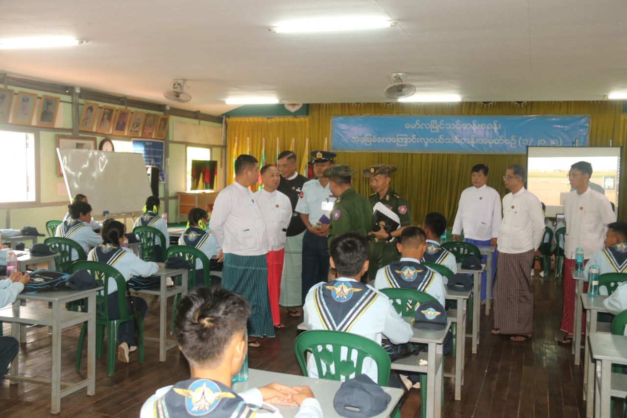 ဆက်လက်၍ ပြည်နယ်ဝန်ကြီးချုပ်၊ တိုင်းမှူးနှင့် ပြည်နယ်အစိုးရအဖွဲ့ဝင်ဝန်ကြီးများသည် အခြေခံပညာ အထက်တန်းကျောင်း(ရွှေနတ်တောင်)၌ အခြေခံလေကြောင်း လူငယ်သင်တန်းအမှတ်စဉ်(၁/၂၀၂၅) လေကြောင်းဆိုင်ရာ ဘာသာရပ်များအား ဖွင့်လှစ်ပို့ချနေမှု အခြေအနေများအပေါ် ကြည့်ရှုအားပေးခဲ့ကြပြီး ပြည်နယ်ဝန်ကြီးချုပ်နှင့် တိုင်းမှူးတို့က အခြေခံလေကြောင်း လူငယ်သင်တန်းအတွက် ချီးမြှင့်ငွေများ ပေးအပ်ခဲ့ကြသည်။
