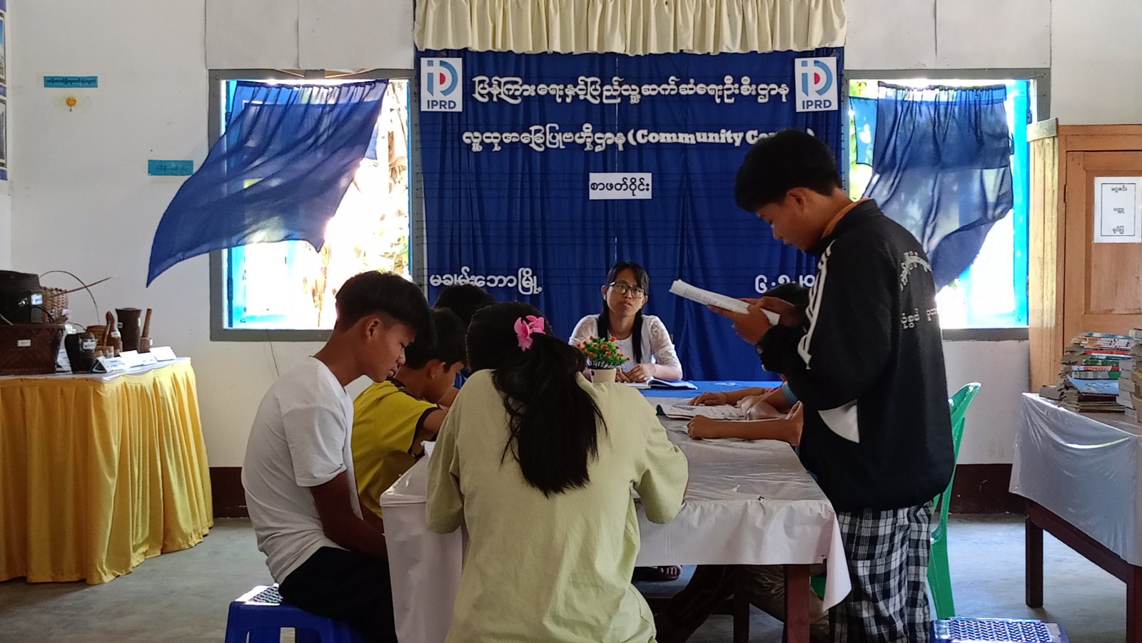 ကချင်ပြည်နယ်၊ ပူတာအိုခရိုင်၊ မချမ်းဘောမြို့တွင် ကျောင်းသားလူငယ်များ စာဖတ်ရှိန်မြှင့်တင်လာစေရန်နှင့် သဘာဝဘေးအန္တရာယ်ကာကွယ်ရေးဆိုင်ရာများ သိရှိစေရန်ရည်ရွယ်၍ Youth Club အသင်းဝင်များနှင့်ပူးပေါင်းကာ စာဖတ်ဝိုင်းကို မေ ၆ ရက်နေ့ နံနက် ၉ နာရီခွဲက လူထုအခြေပြုဗဟိုဌာန (Community Centre) ခန်းမ၌ ကျင်းပခဲ့သည်။